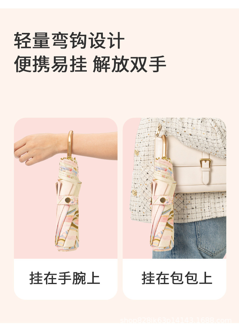知伞金弯钩遮阳伞防晒防紫外线折叠太阳伞晴雨伞两用高级感颜值女
