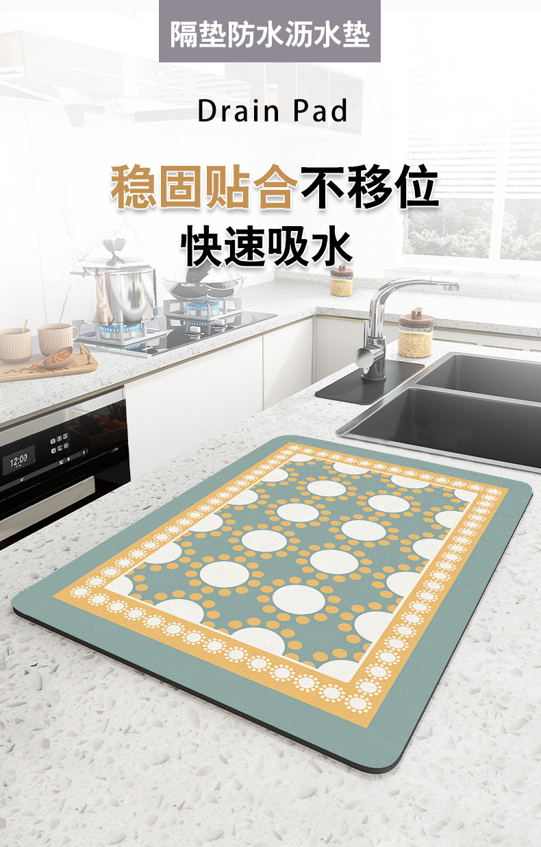 硅藻泥地垫升级款纳帕皮厨房沥水垫碗盘干燥垫杯垫吸水垫隔热地垫