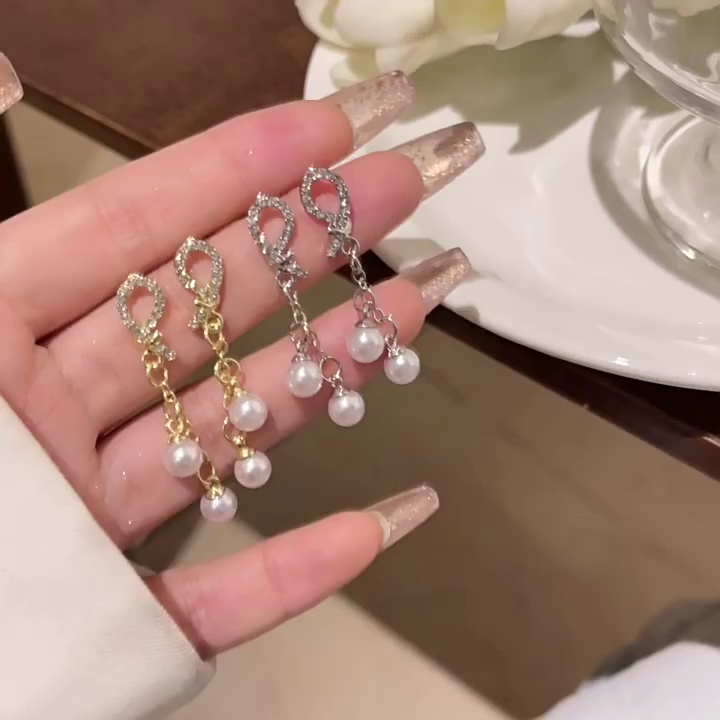 ins潮长款流苏百搭气质珍珠耳环耳饰925银针复古高级感镶钻耳钉女