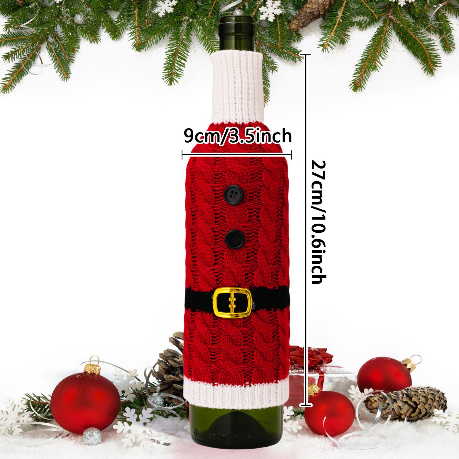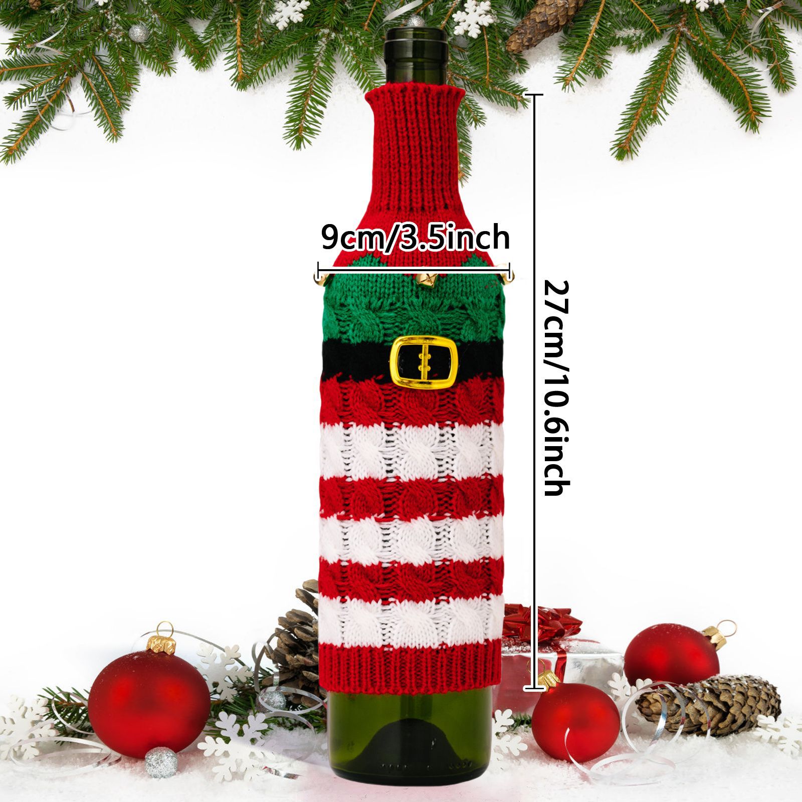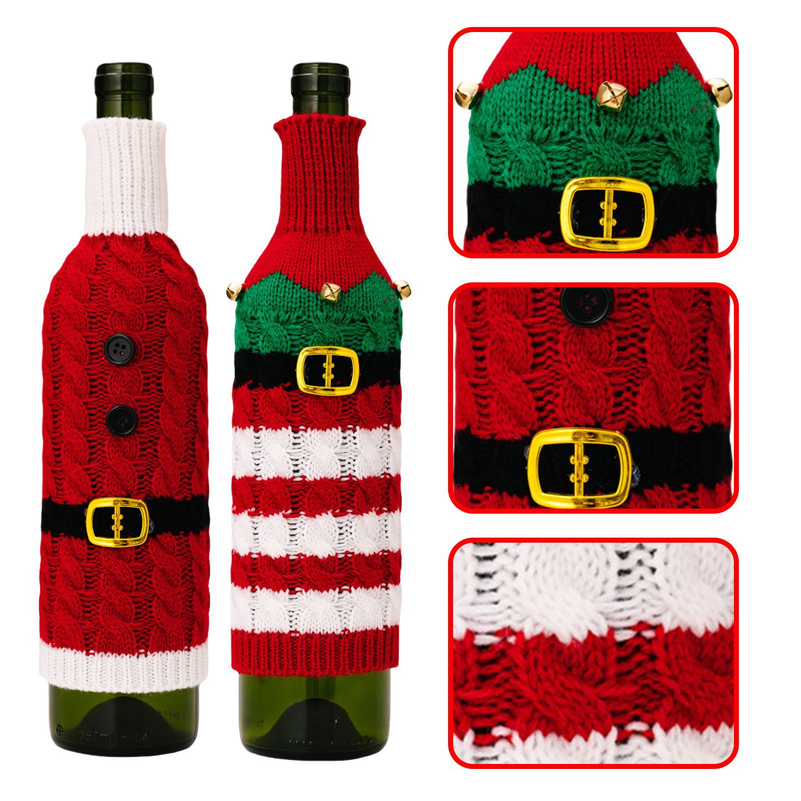 跨境圣诞节针织酒瓶套装饰品铃铛红绿红酒套餐厅派对节日氛围摆件