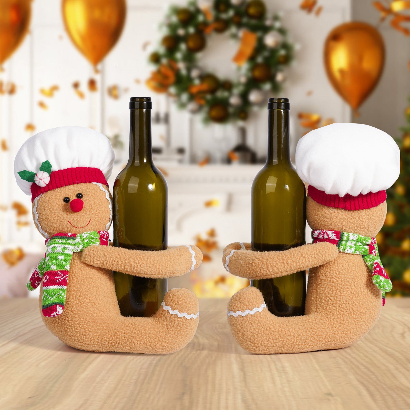 圣诞节跨境抱树姜饼人圣诞树柱子装饰独特姜饼人酒瓶套窗帘装饰挂