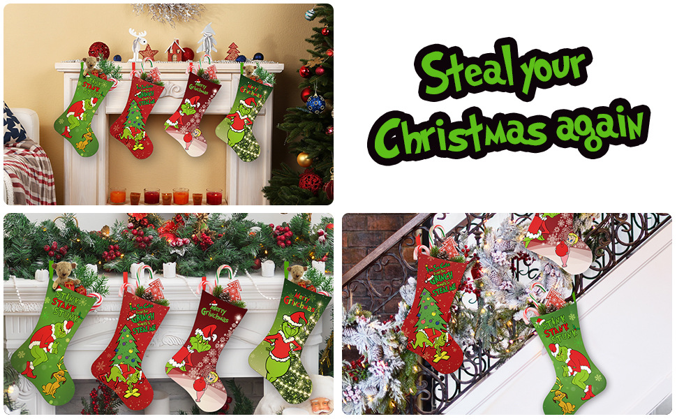 跨境圣诞节新品格林奇圣诞袜格林奇大号圣诞袜挂件壁炉装饰品