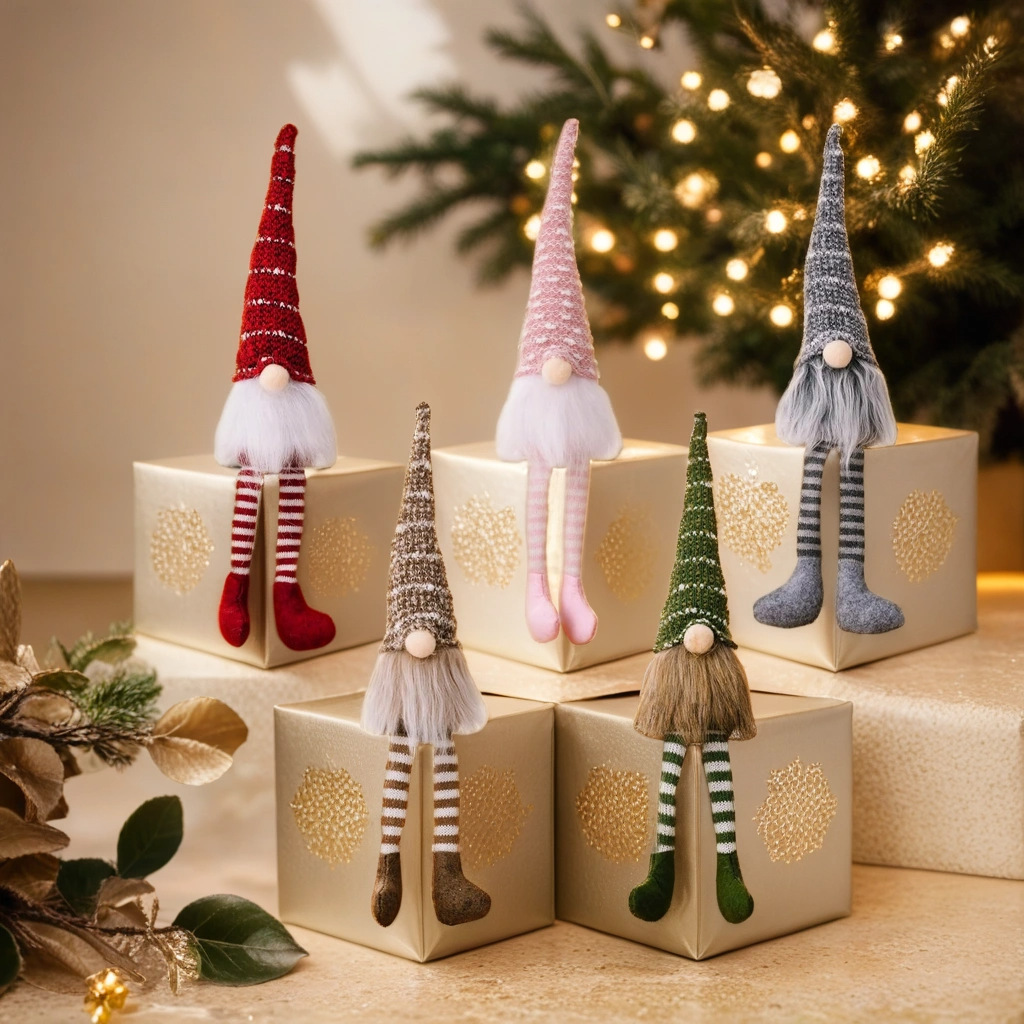 跨境圣诞节条纹针织帽鲁道夫挂腿公仔无脸娃娃侏儒摆件北欧风装饰