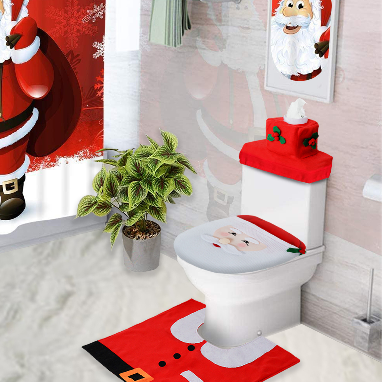 跨境新品圣诞节装饰用品单个老人马桶盖圣诞酒店卡通马桶装饰用品