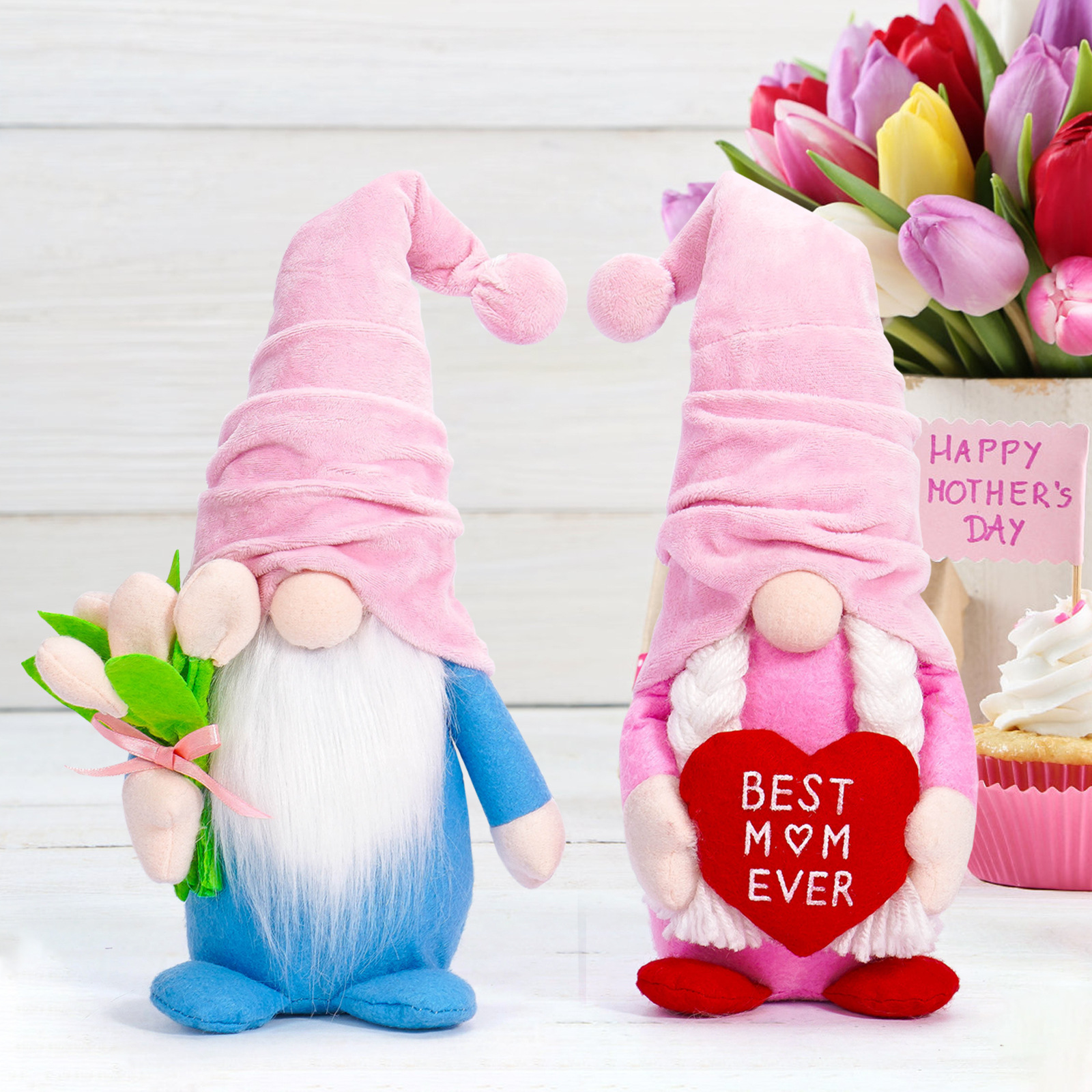 跨境母亲节无脸娃娃爱心郁金香公仔可爱侏儒地精装饰摆件节日礼物