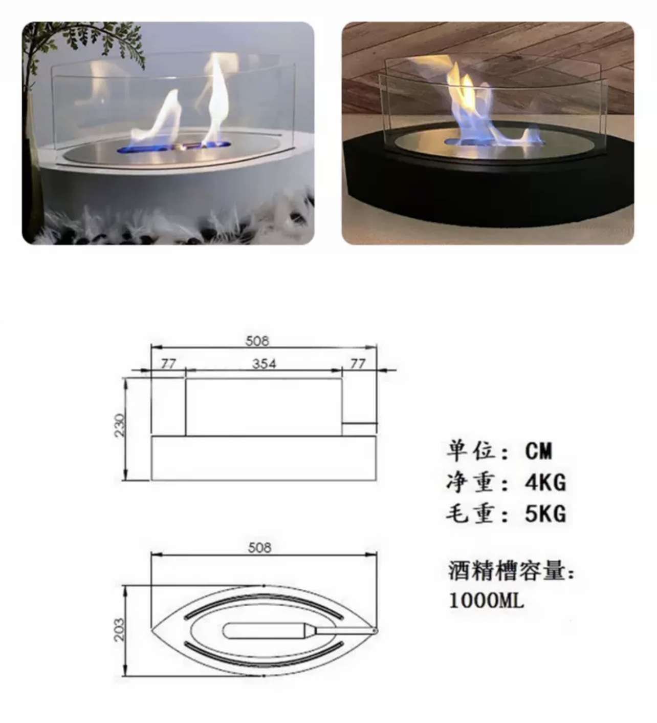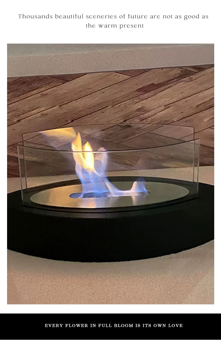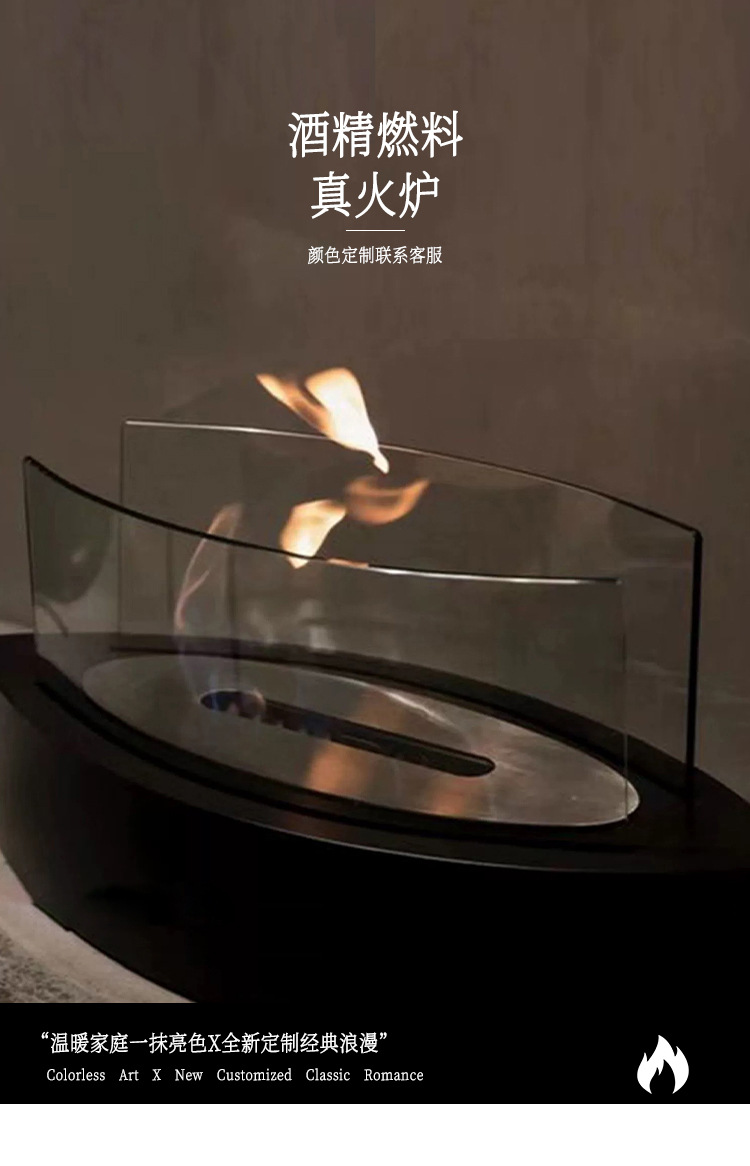 跨境热销台式小火炉真火酒精壁炉桌面火炉玻璃悬空取暖烧烤炉ins