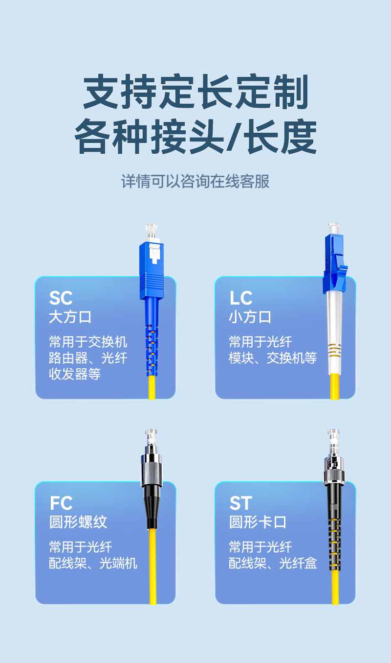 光纤跳线单模单芯双芯跳线SC尾纤机房布线电信级跳线LC-FC-ST批发