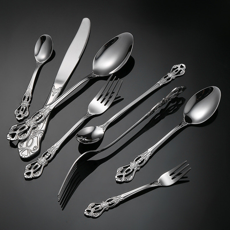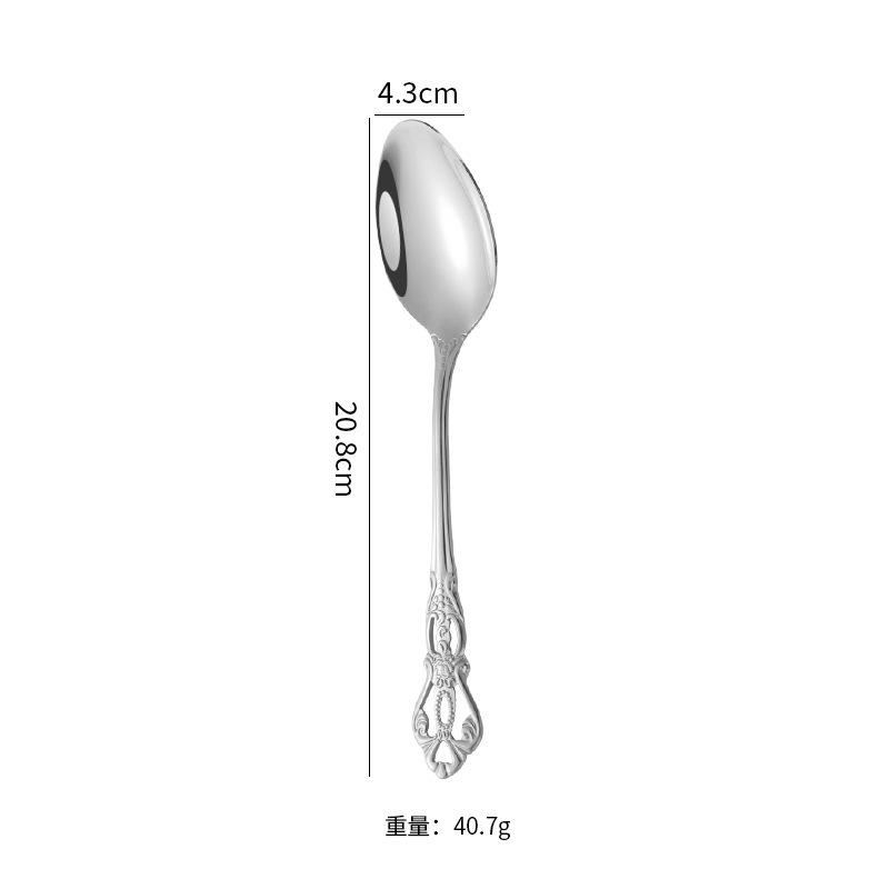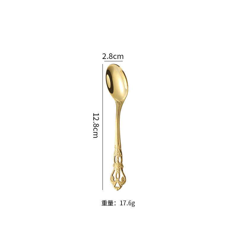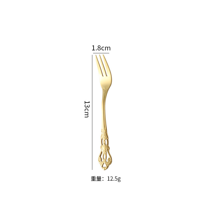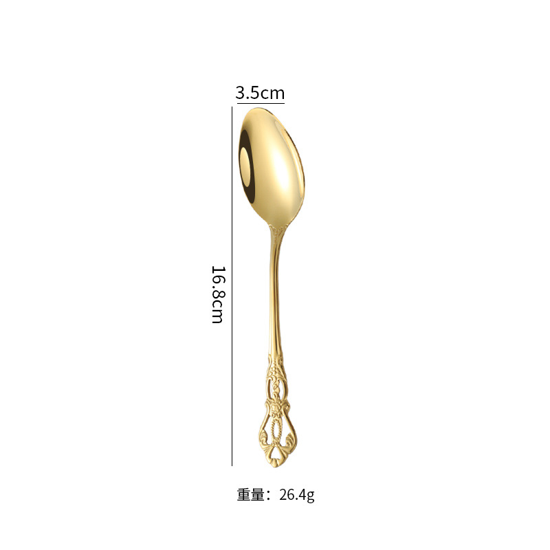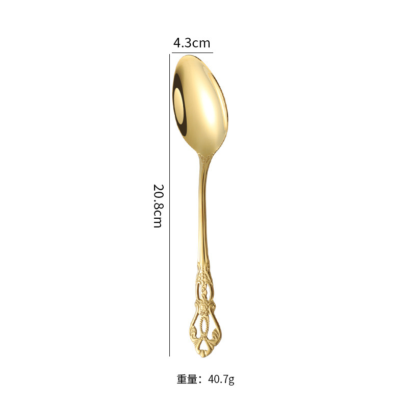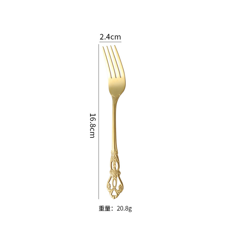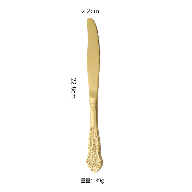 复古浮雕不锈钢西餐餐具皇庭西餐餐具金色牛排刀叉勺甜品勺甜品叉