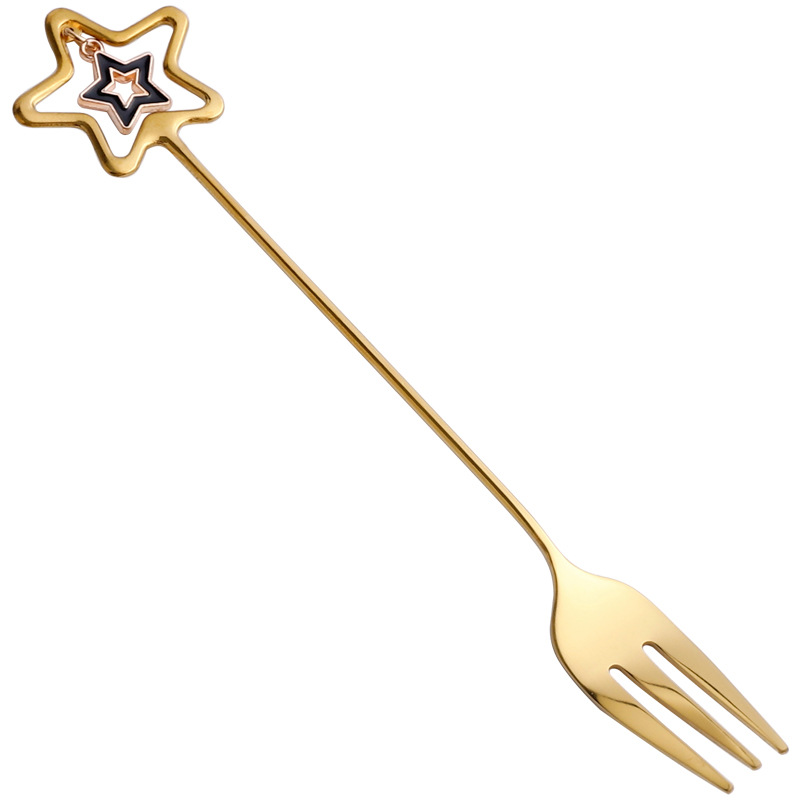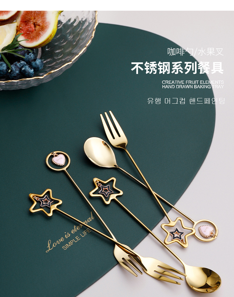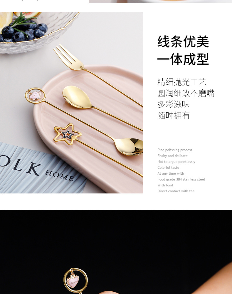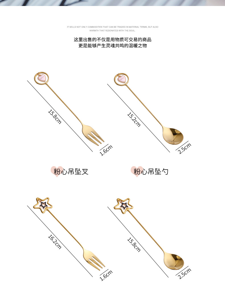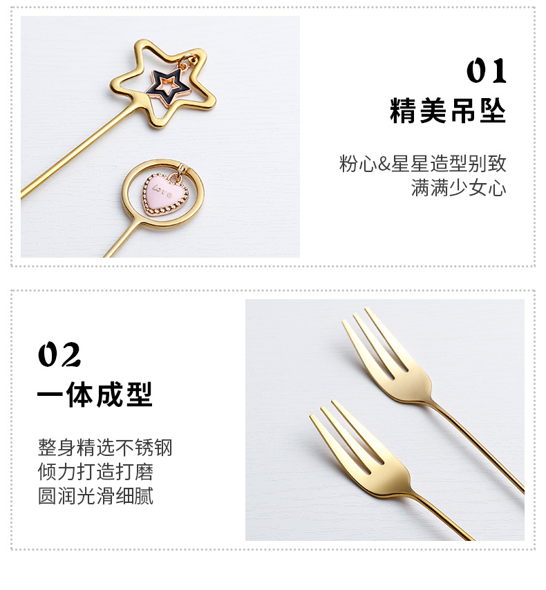 304不锈钢咖啡勺水果叉可爱创意心星相印吊坠勺叉甜品搅拌勺