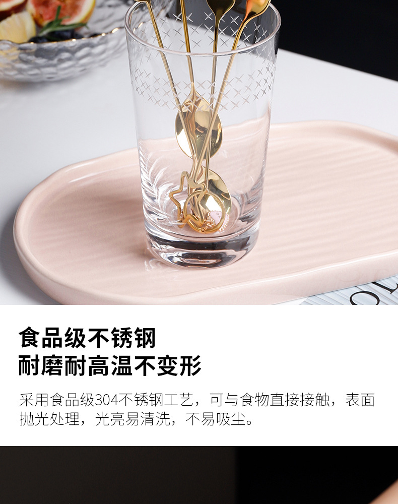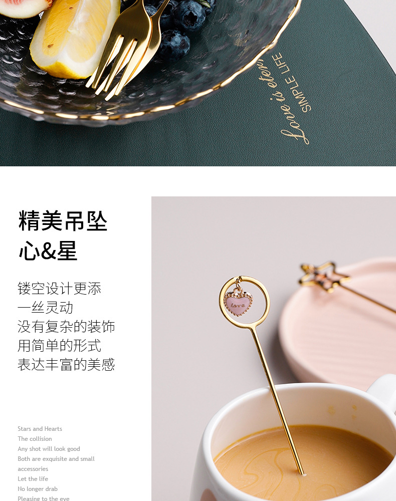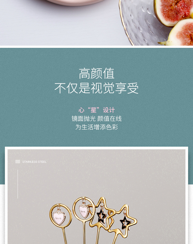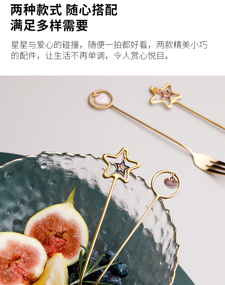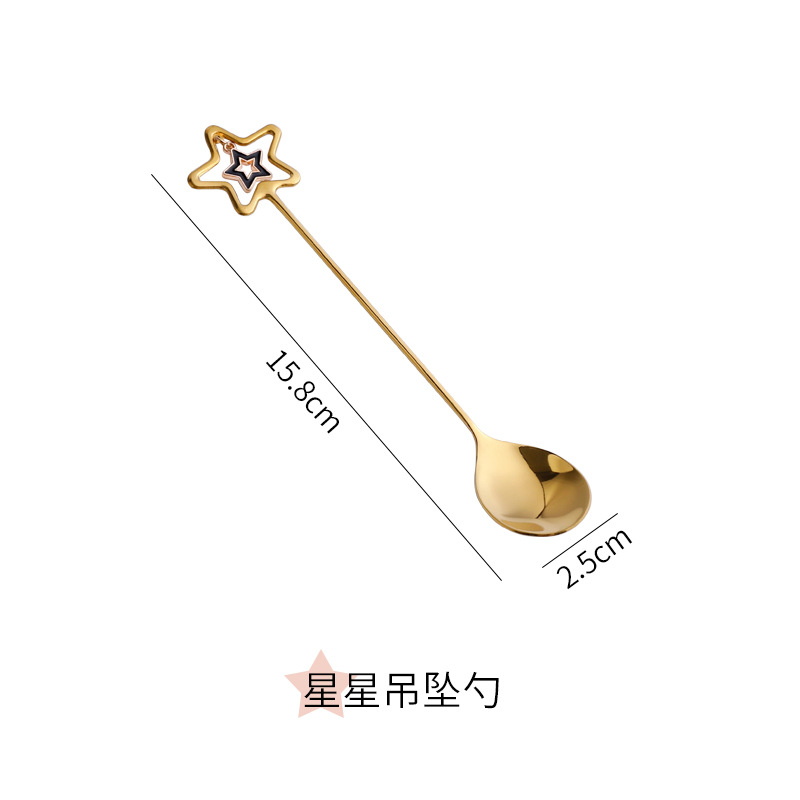304不锈钢咖啡勺水果叉可爱创意心星相印吊坠勺叉甜品搅拌勺