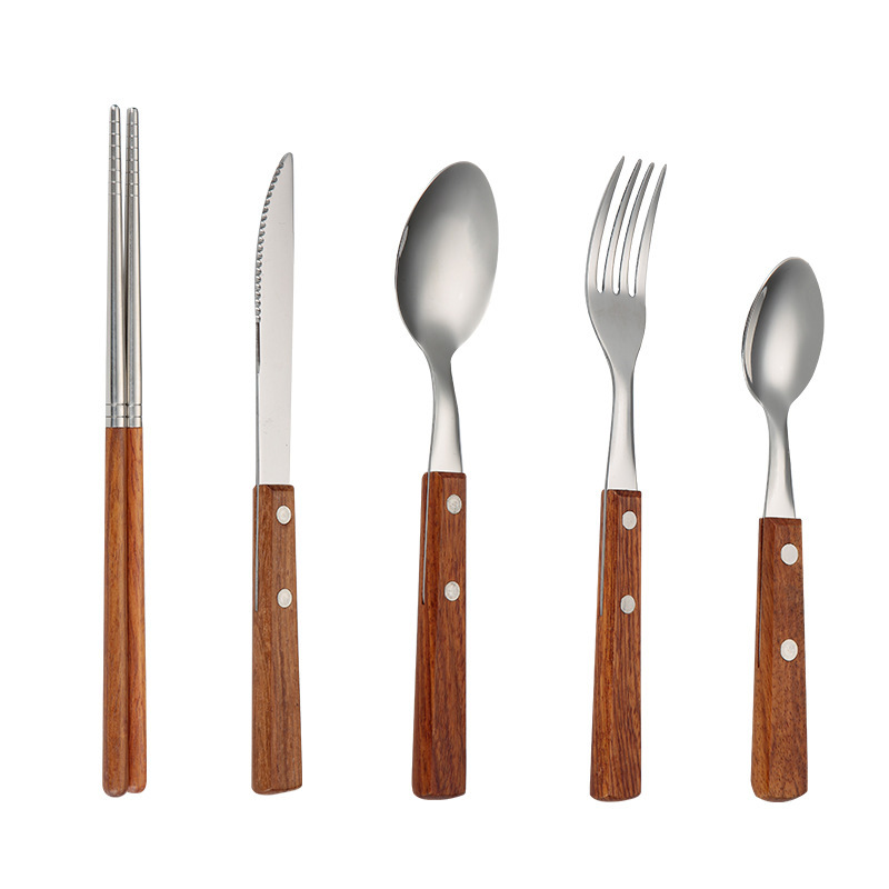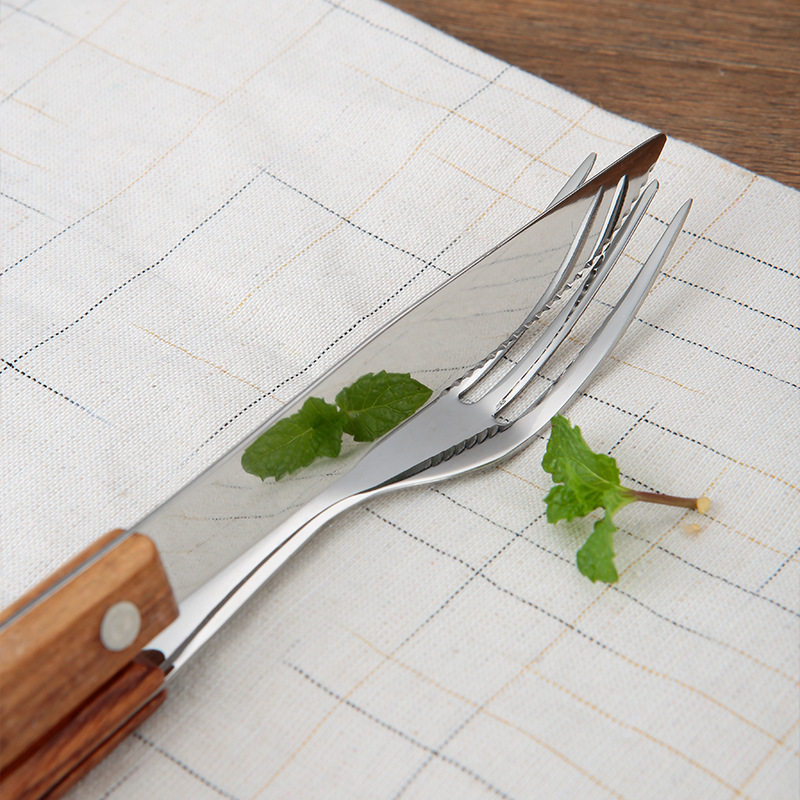 花梨木柄不锈钢餐具西餐刀叉勺 酒店西餐餐具牛排刀叉批发