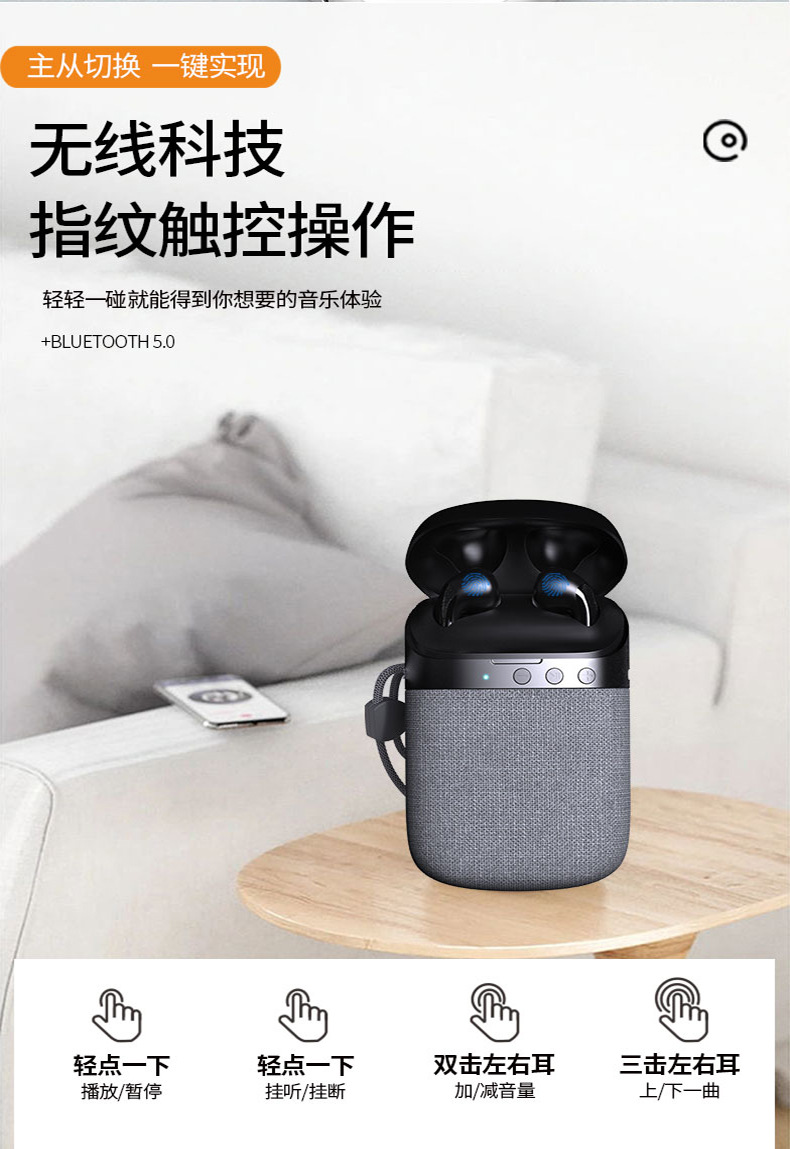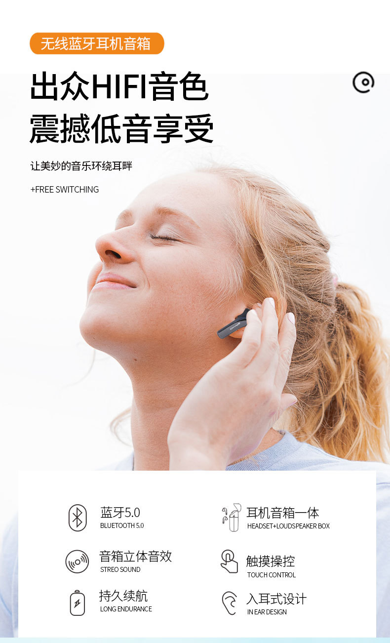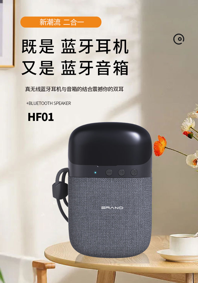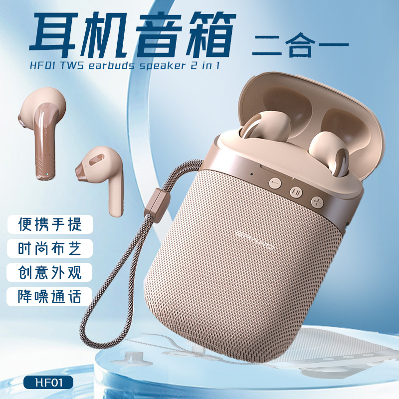 HF01入耳式蓝牙耳机新款 TWS对耳蓝牙耳机音箱无线二合一音响5瓦