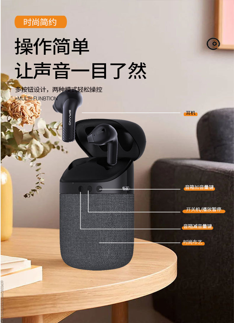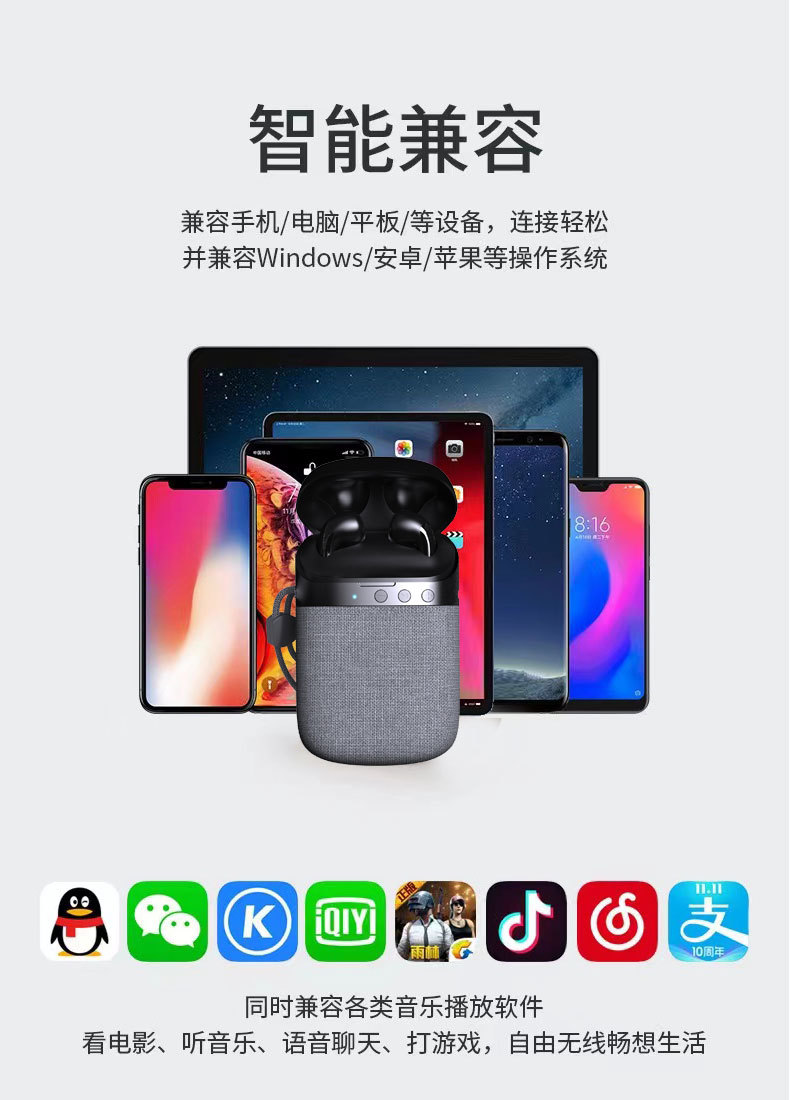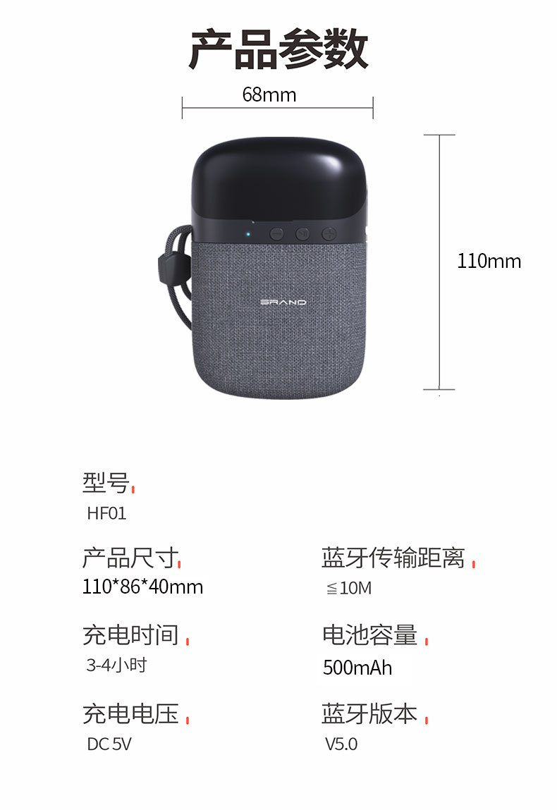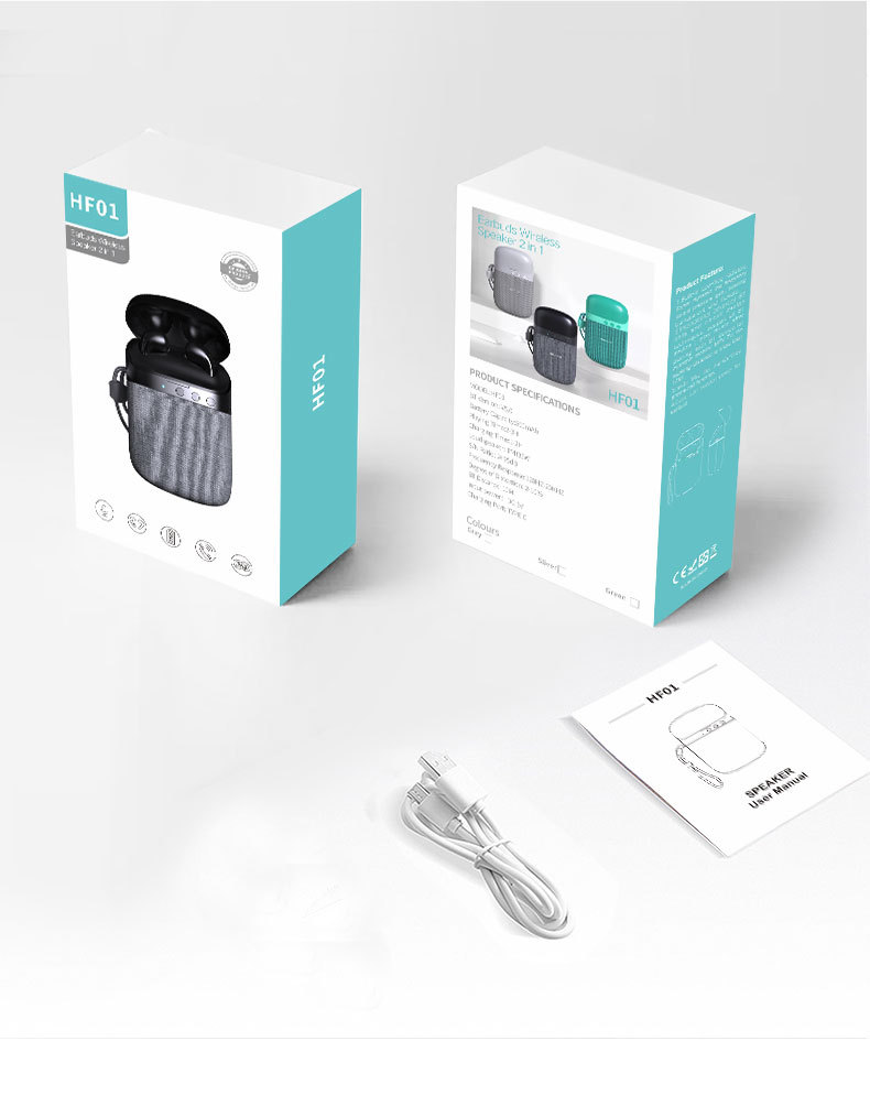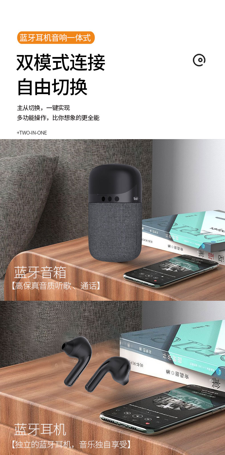 HF01入耳式蓝牙耳机新款 TWS对耳蓝牙耳机音箱无线二合一音响5瓦
