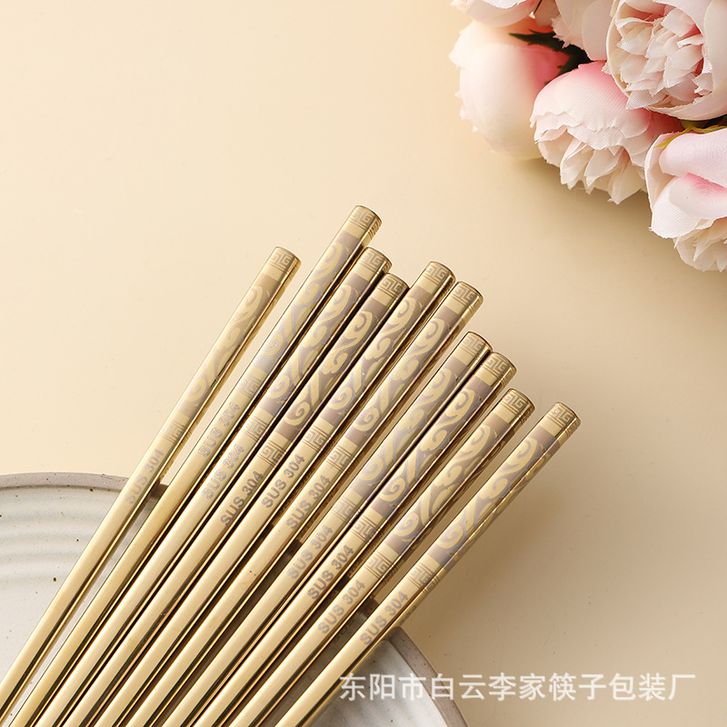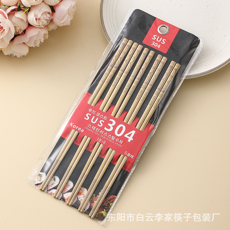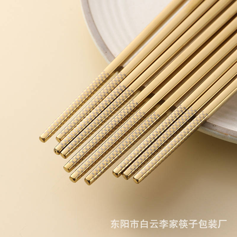 304方形不锈钢筷子筷托家用高档防滑金色方形跨境亚马逊套装餐具