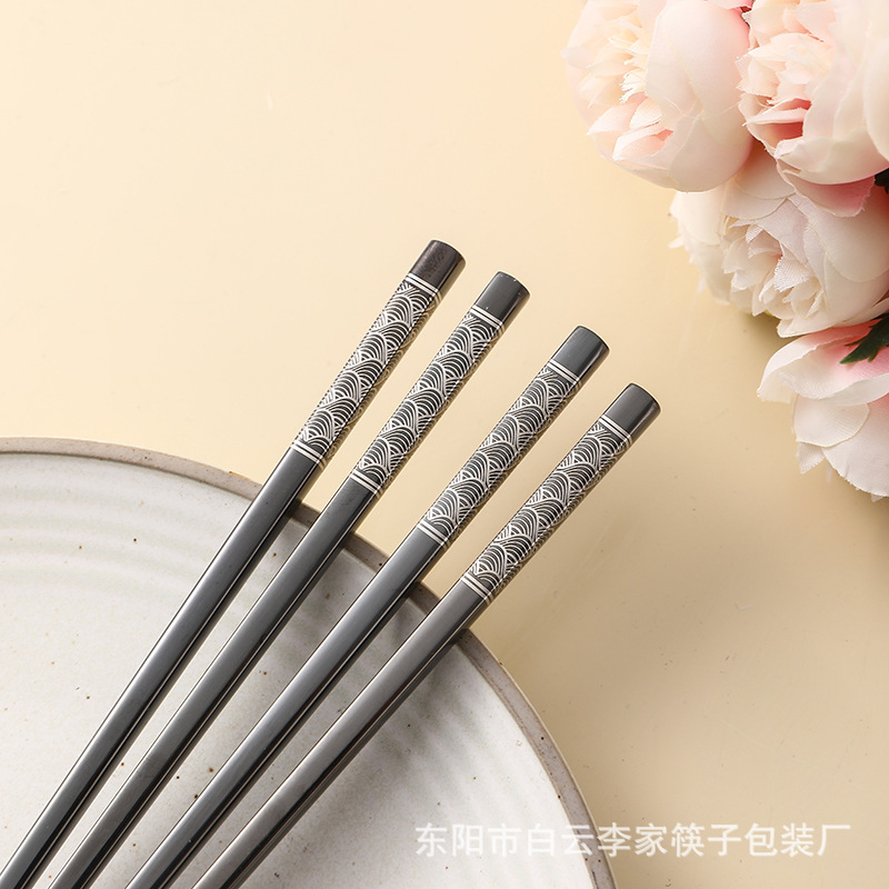 304方形不锈钢筷子筷托家用高档防滑方形跨境亚马逊套装韩式餐具