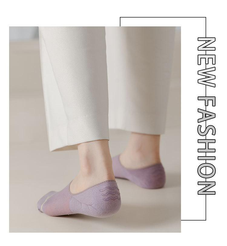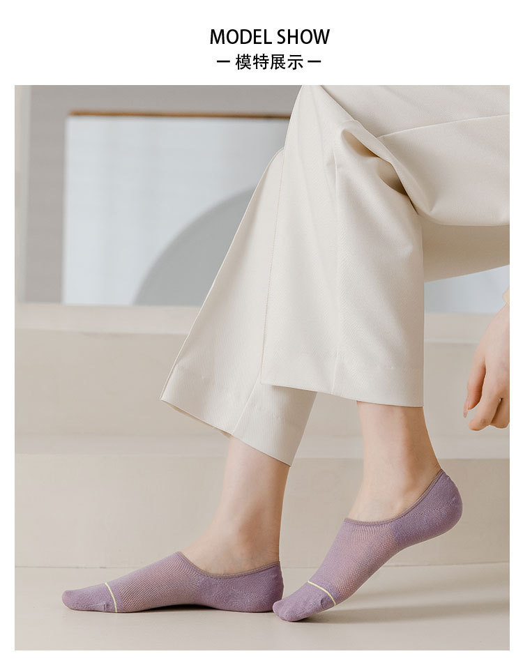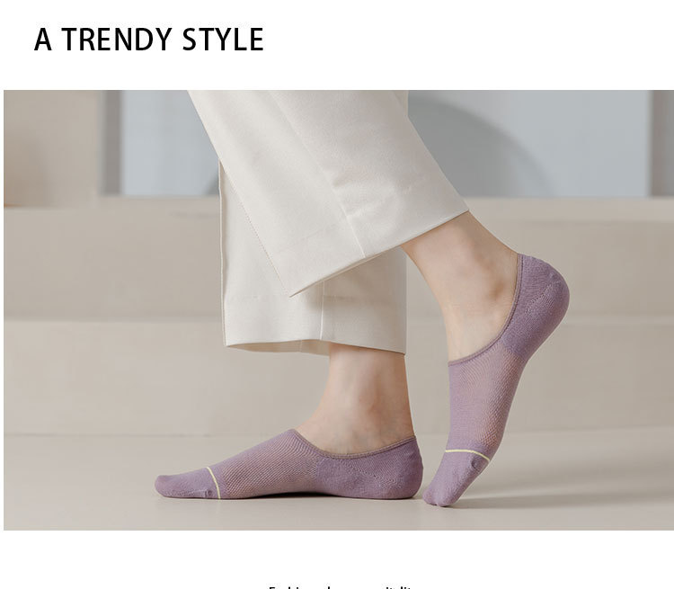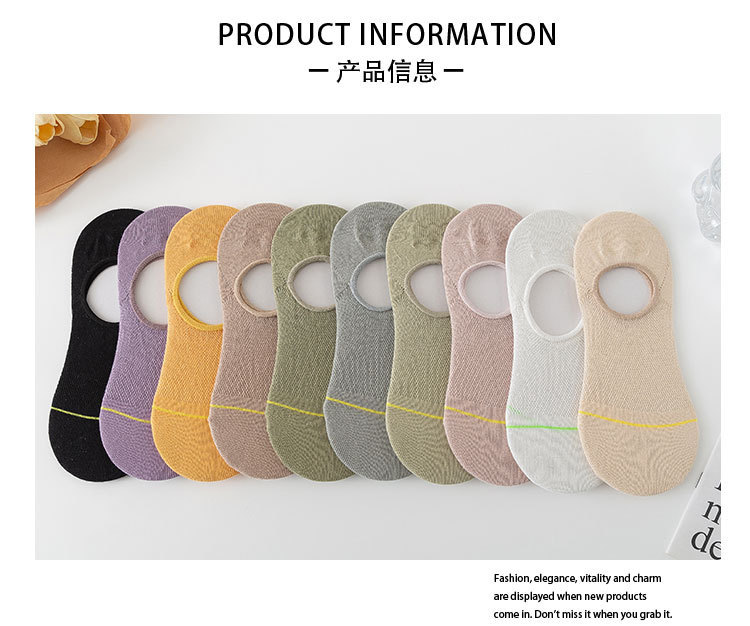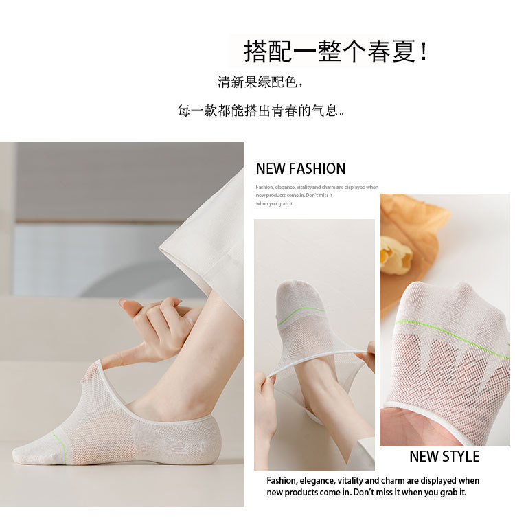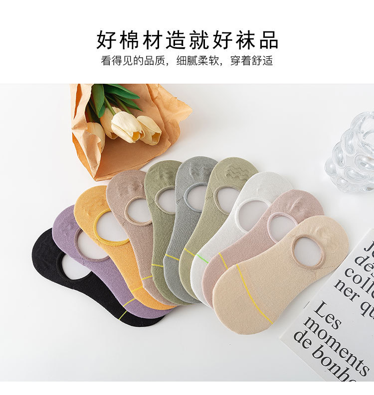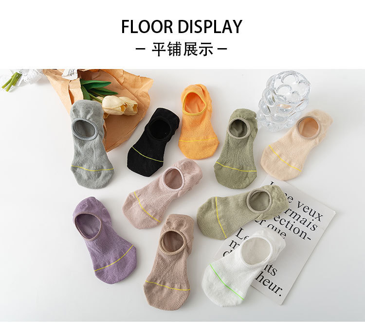 船袜女夏季透气网眼隐形袜纯色百搭棉袜莫兰迪色系点胶防滑女袜