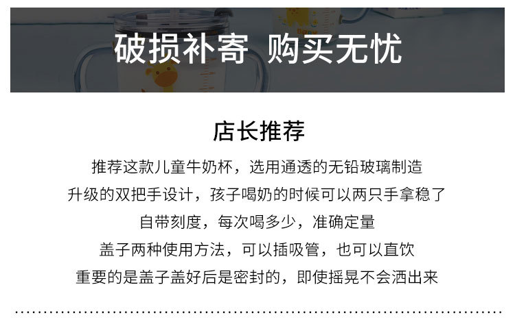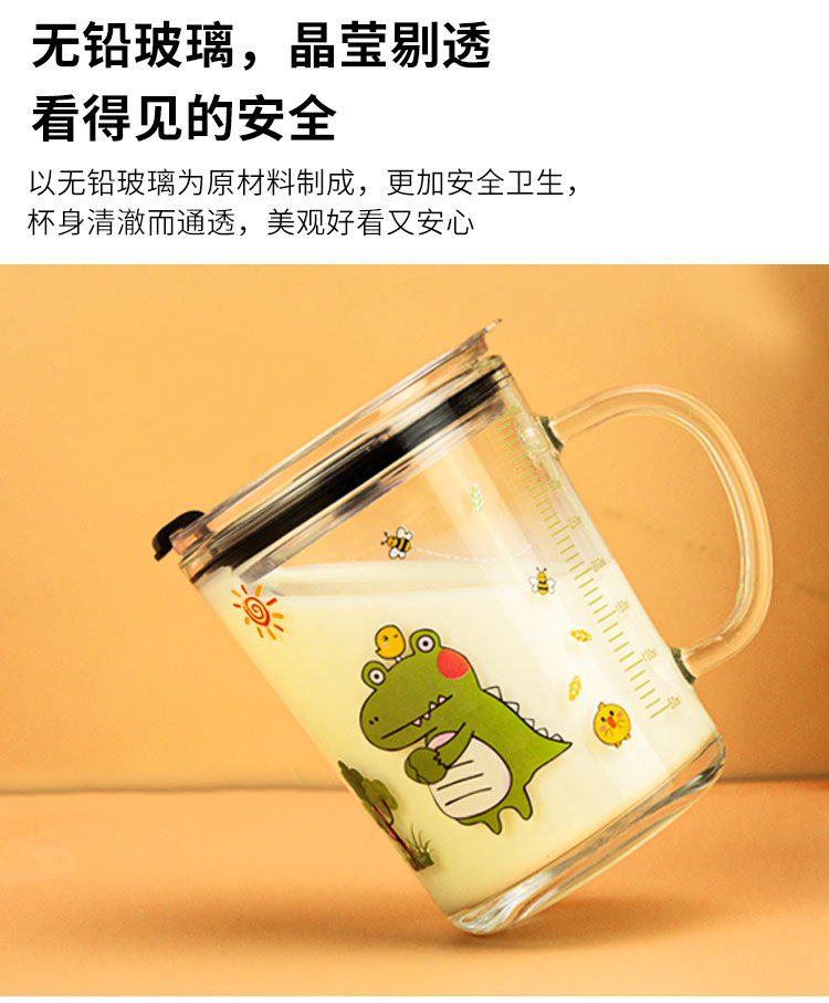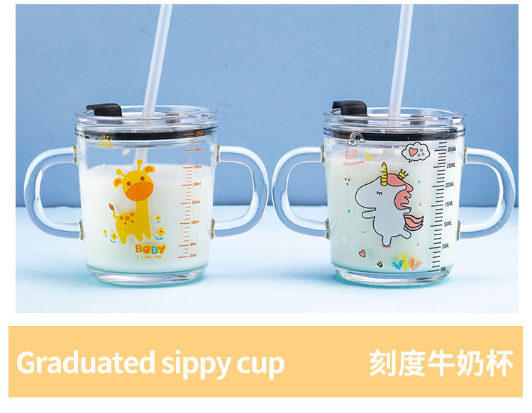 儿童带刻度牛奶吸管玻璃杯家用茶水杯子早餐燕麦果汁杯开业小礼品