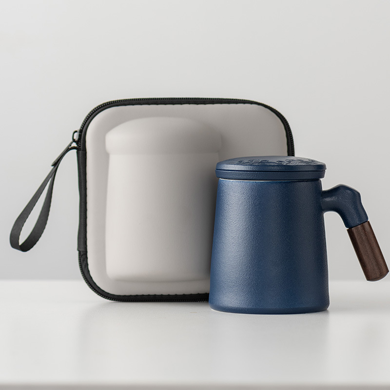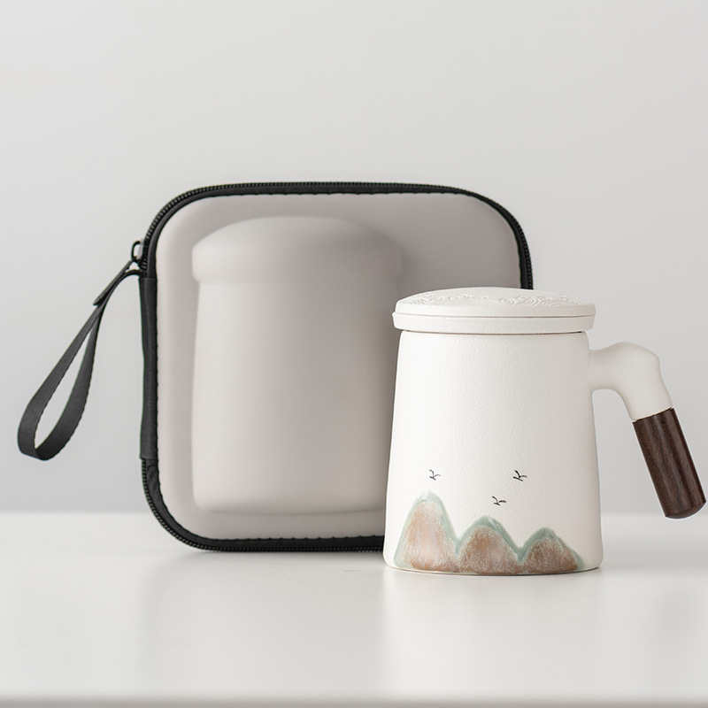 千里江山陶瓷过滤内胆水杯国潮办公杯礼盒商务企业马克杯带盖礼品