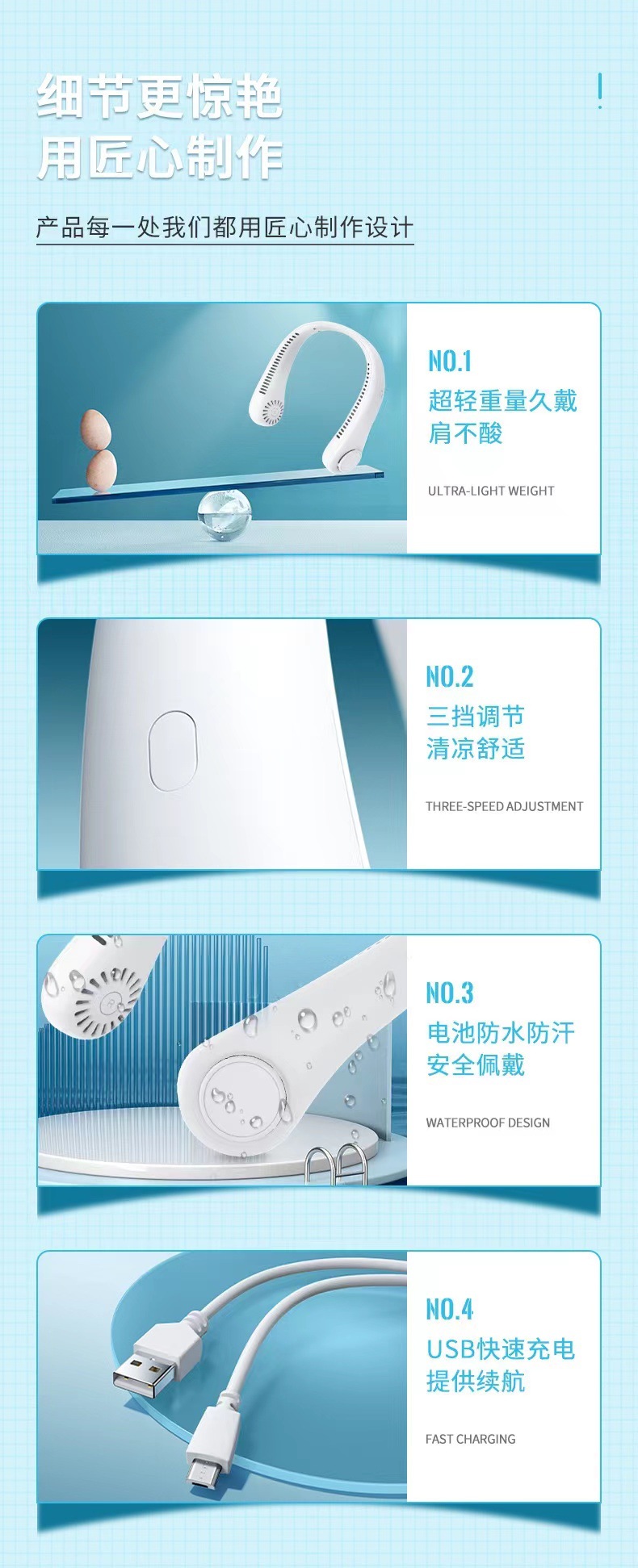 抖音爆款户外挂脖风扇懒人USB充电随身便携静音大风无叶风扇批发