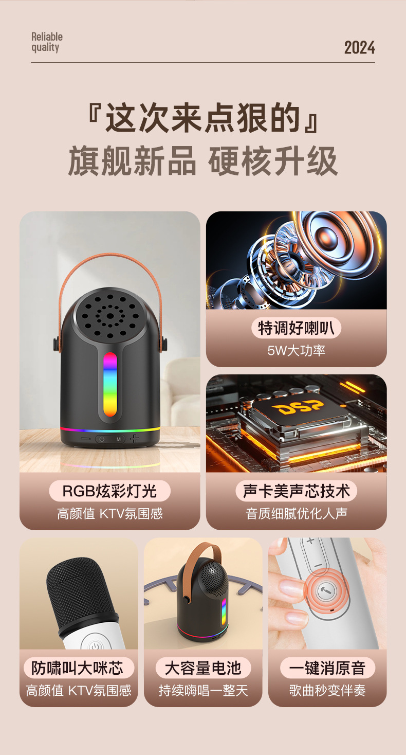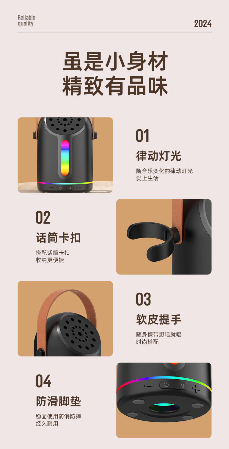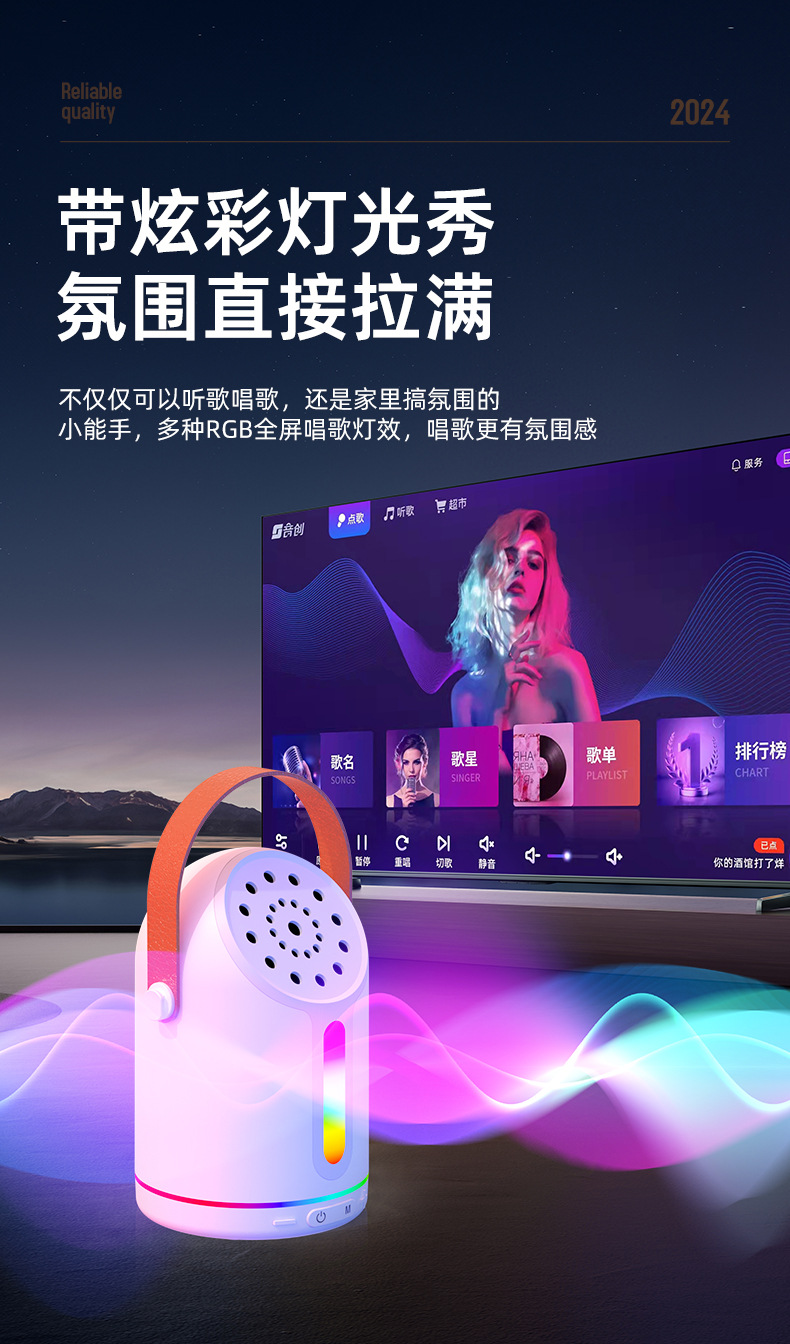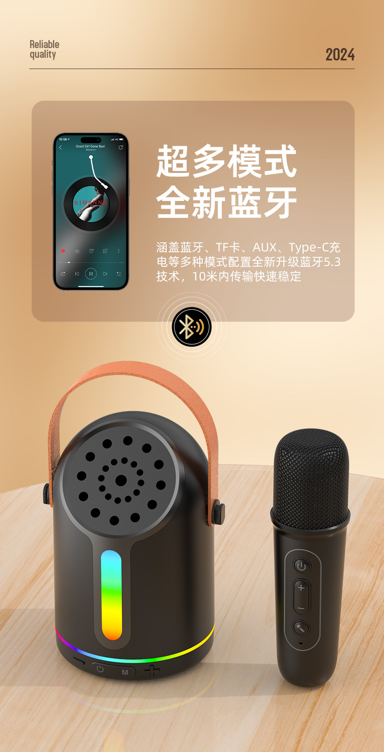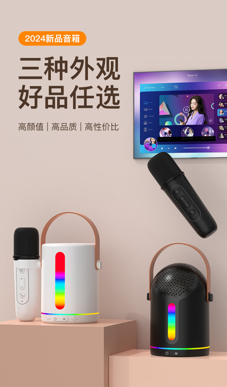 HF752跨境彩灯K歌音箱手提K歌宝音箱大音量无线蓝牙音响手提款