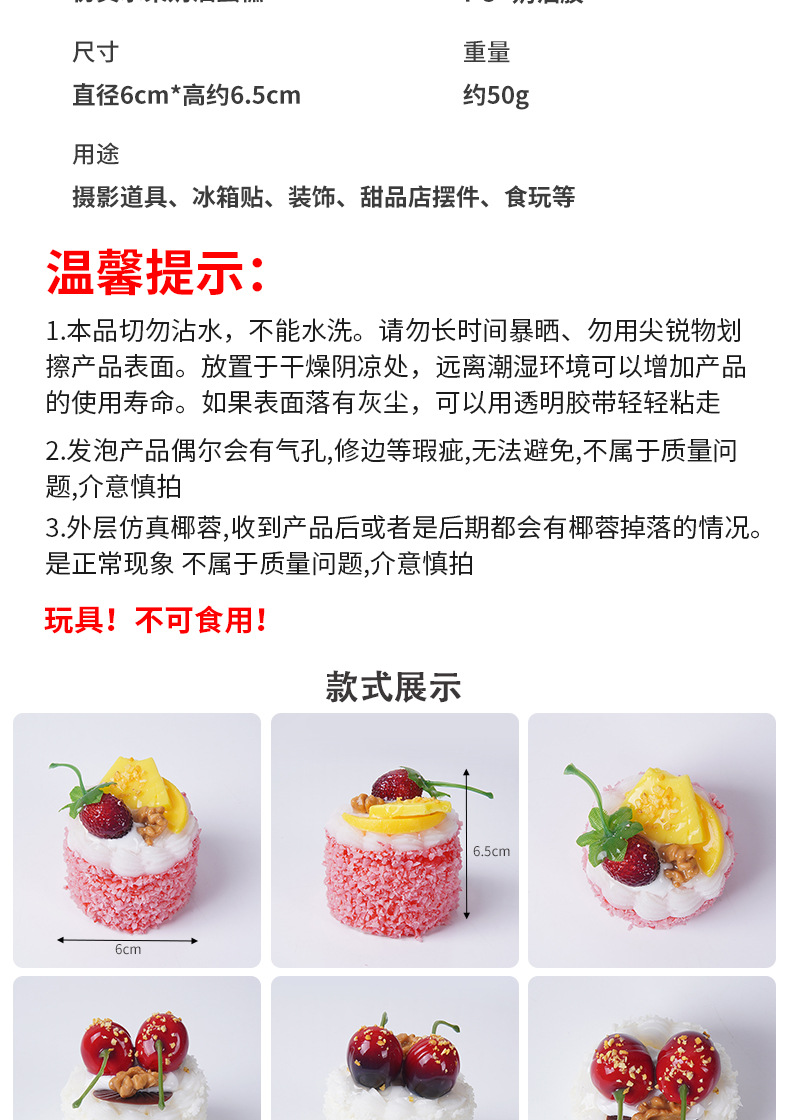 PU仿真慕斯蛋糕模型影视拍摄道具仿真法式甜点面包小蛋糕冰箱贴