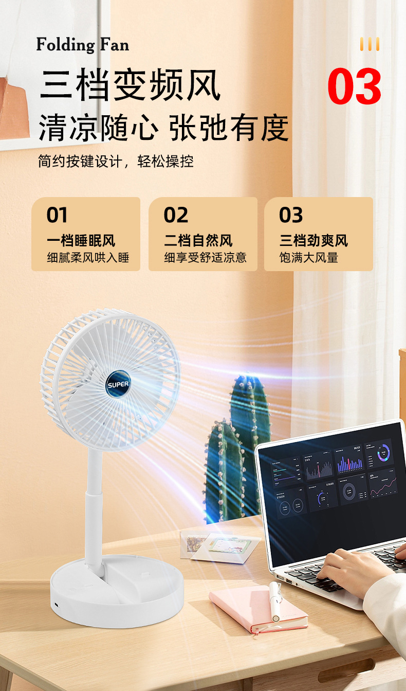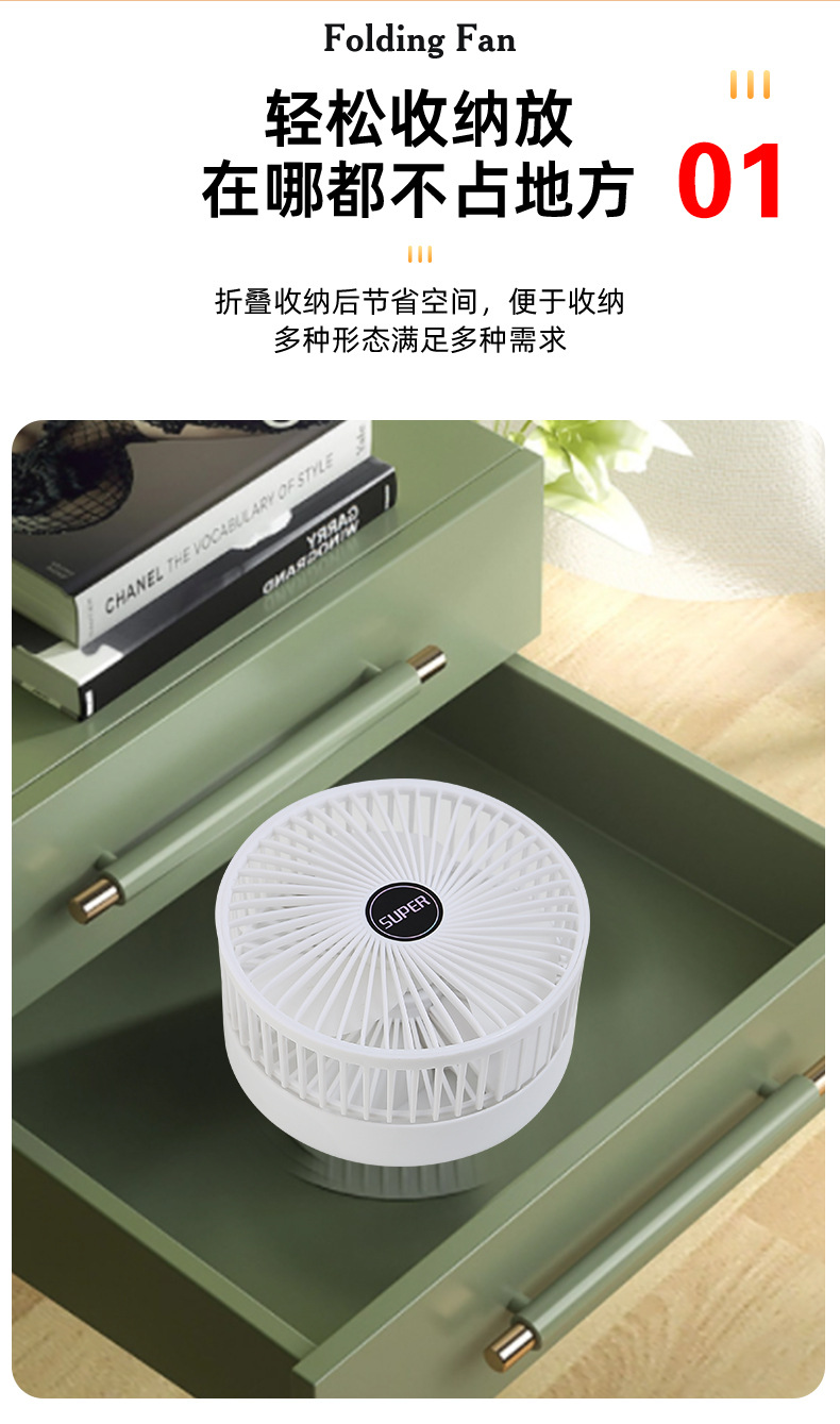 跨境办公室高速静音折叠小型便携式usb充电款长续航迷你桌面风扇