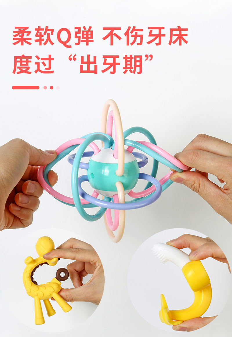 宝宝牙胶磨牙棒神器婴儿咬咬曼哈顿手抓球玩具乐牙咬胶硅胶可水煮