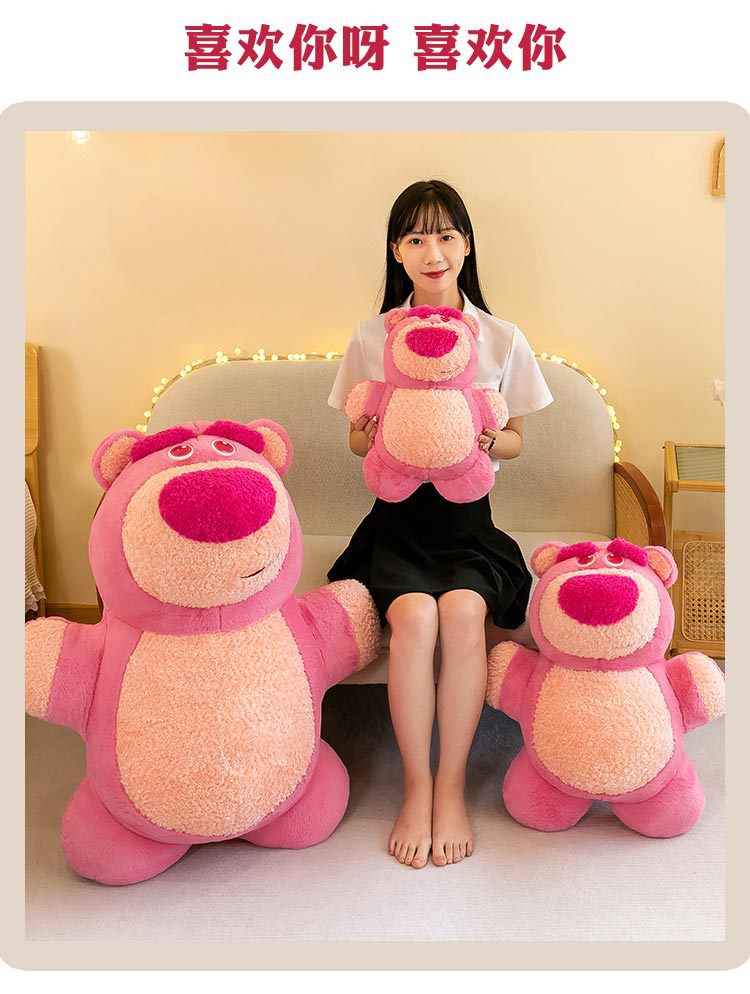 跨境可爱草莓雄小熊卡通玩偶抱枕毛绒玩具生日礼物娃娃机公仔批发