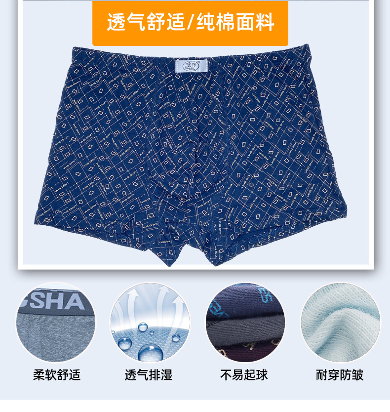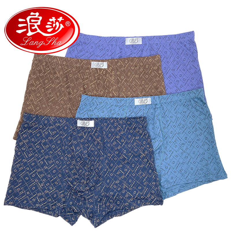 浪莎内裤男纯棉四角裤男生平角底裤四季款季浪沙平脚短裤批发
