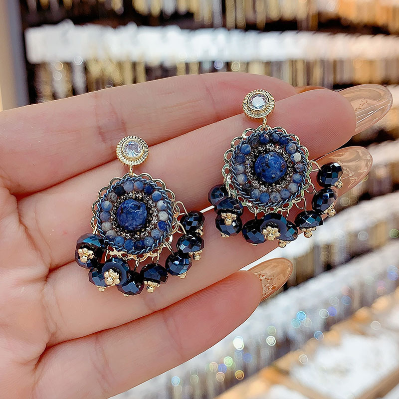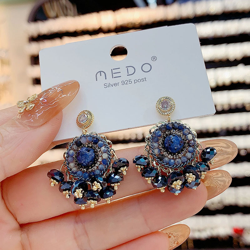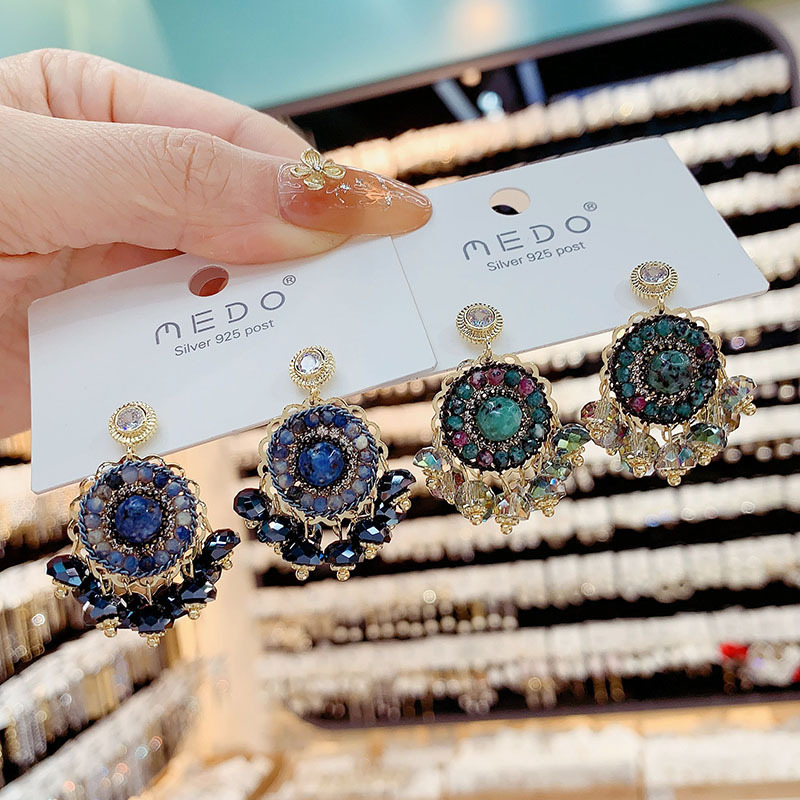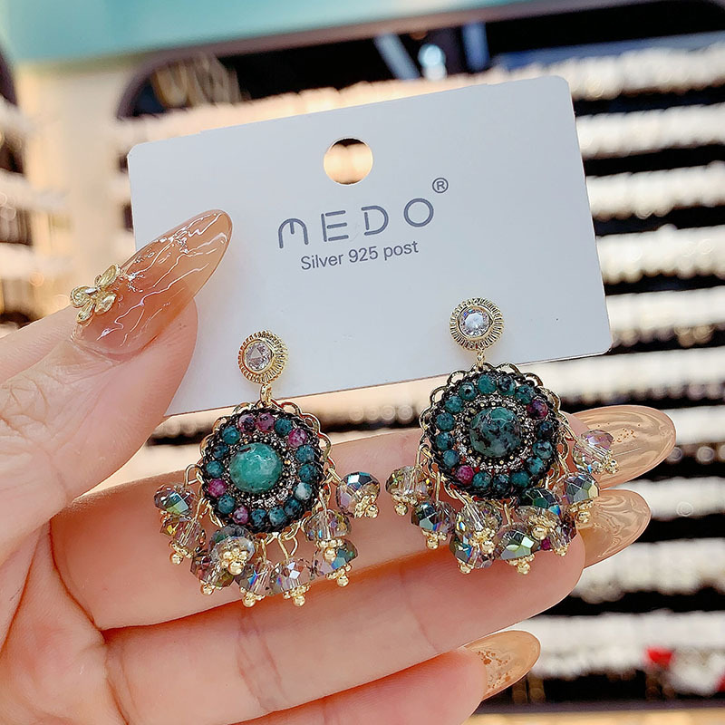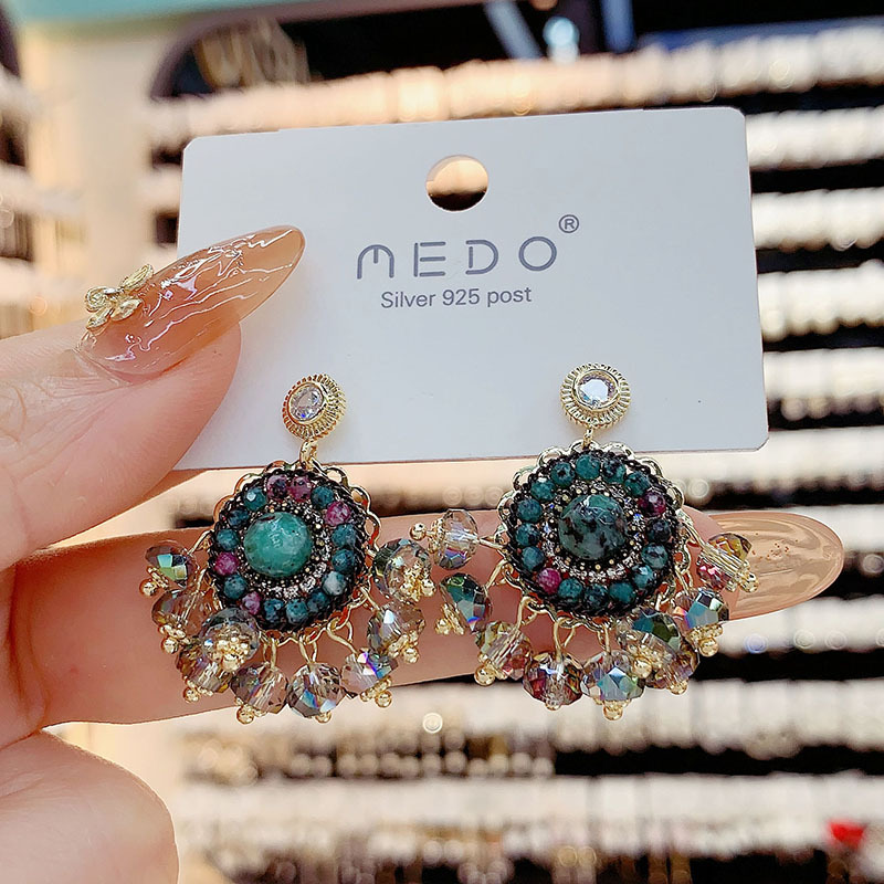 手工款复古轻奢水晶耳环民族风小众流苏银针耳钉波西米亚风耳饰品