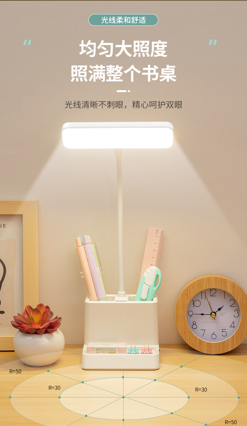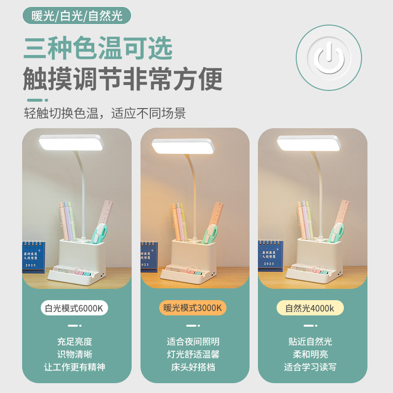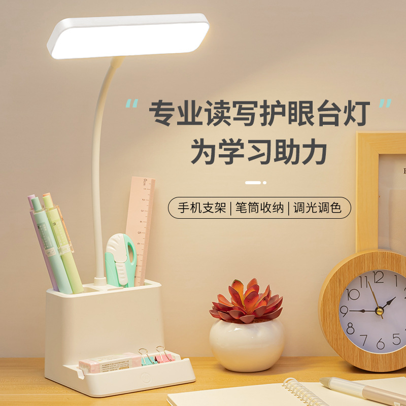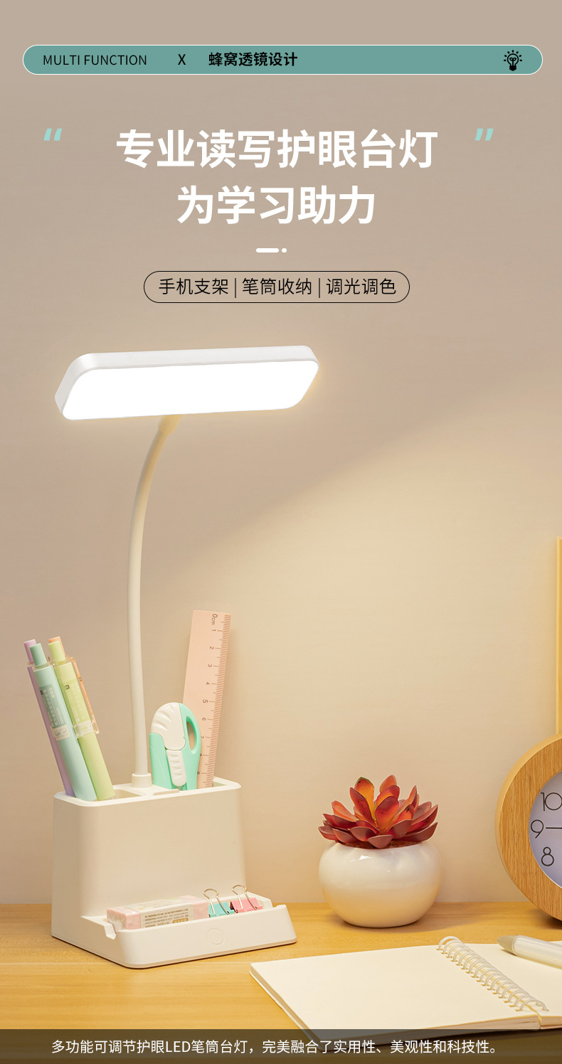 台灯护眼书桌大学生用学习专用可笔筒充电插两用引流LED床头台灯