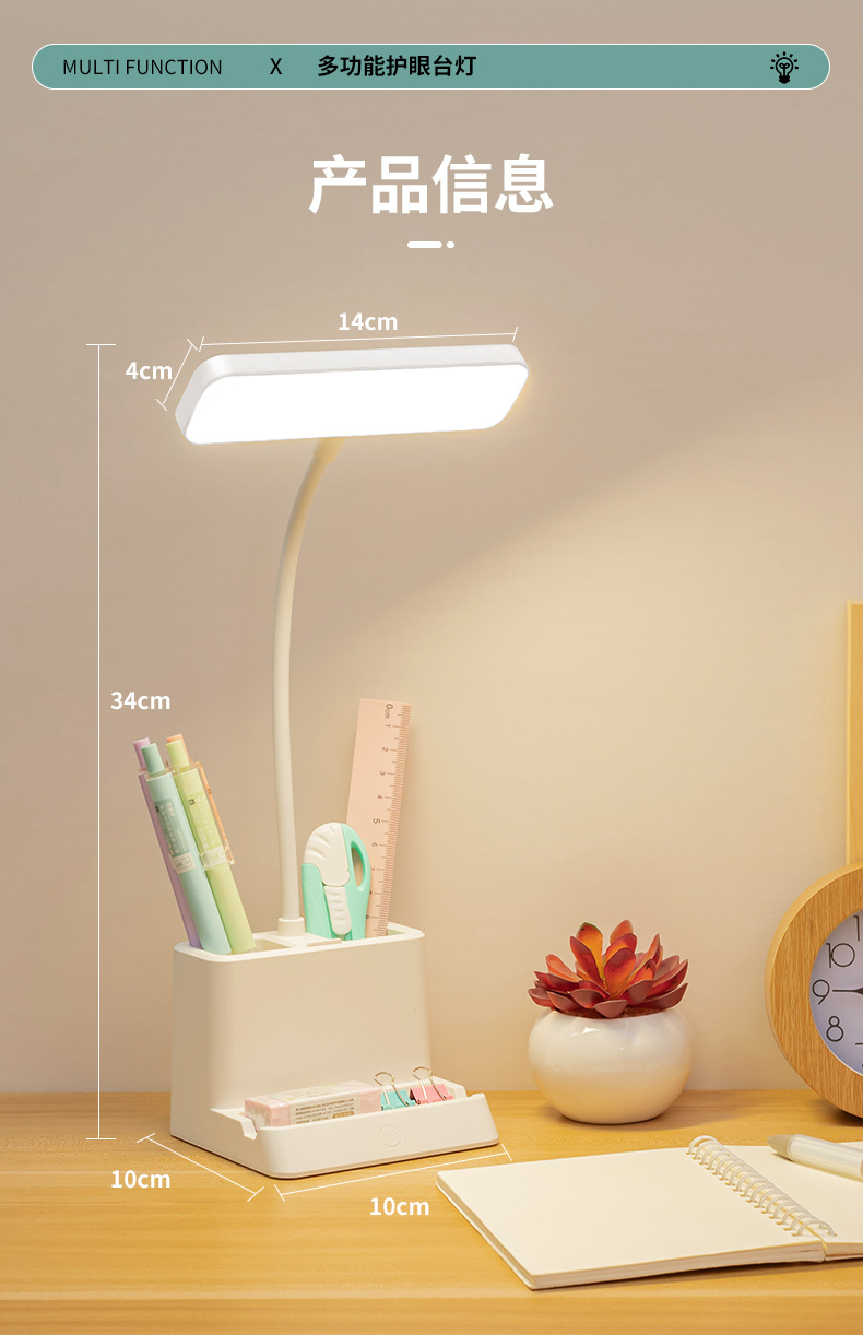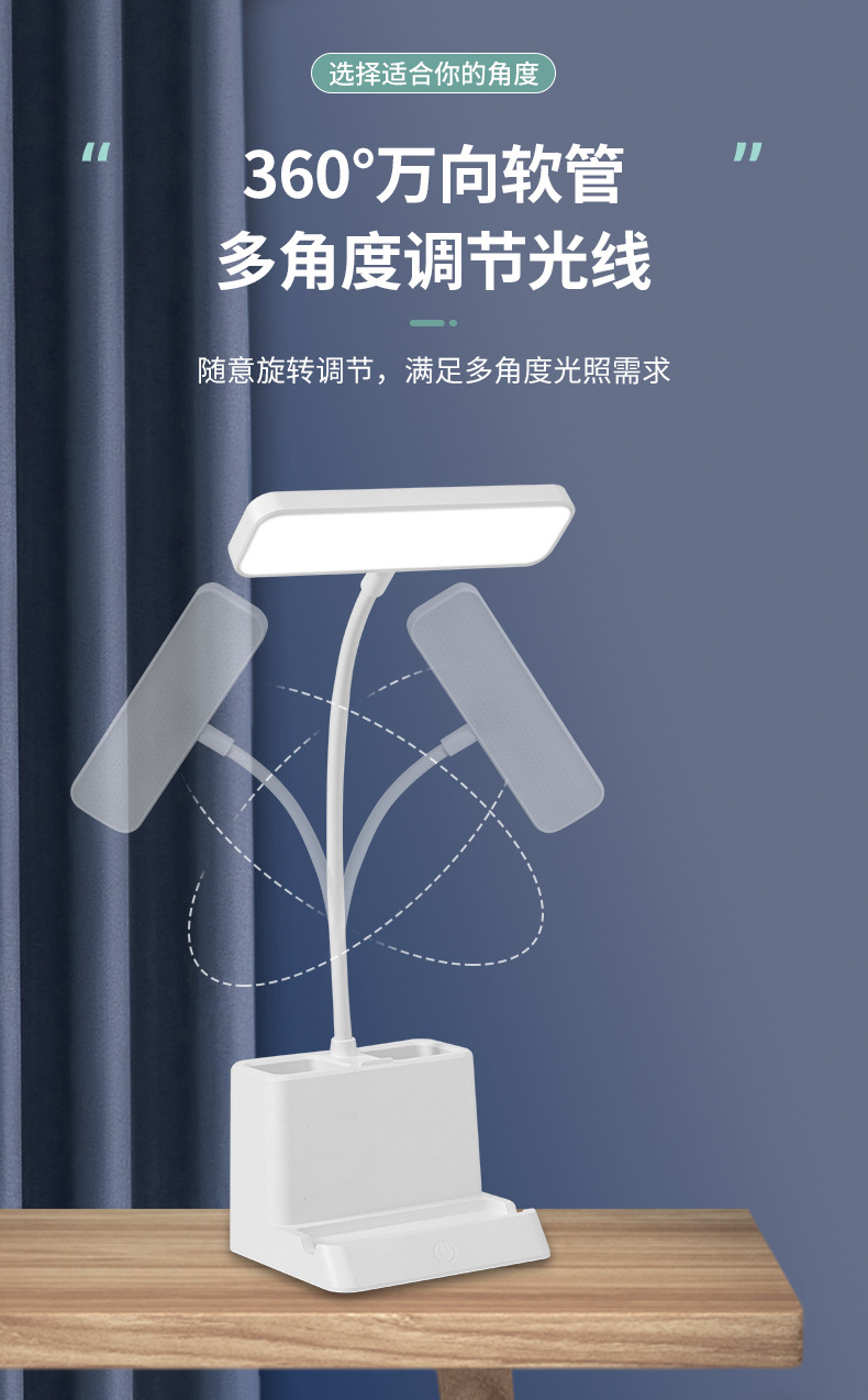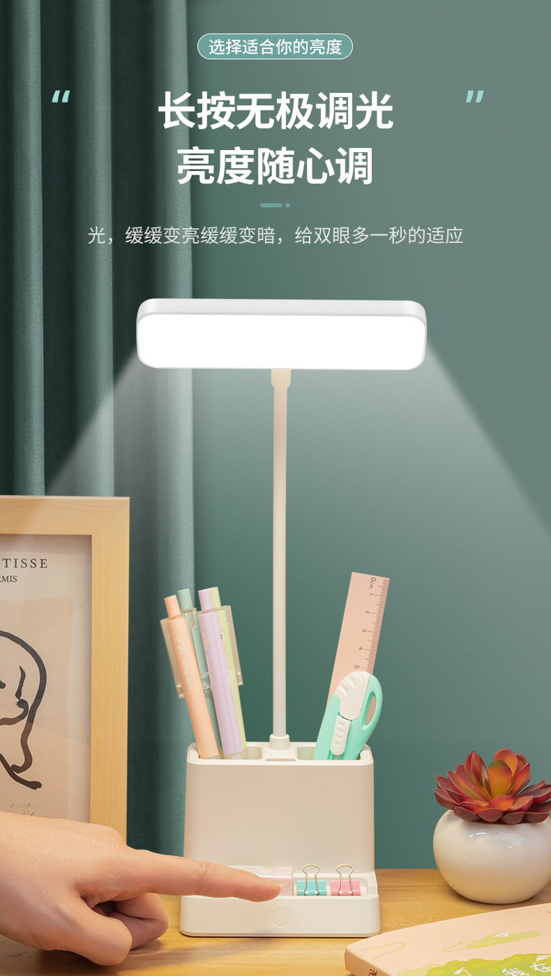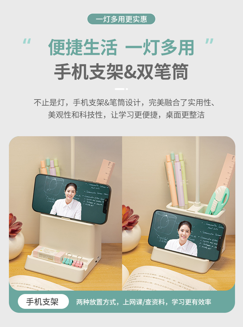 台灯护眼书桌大学生用学习专用可笔筒充电插两用引流LED床头台灯