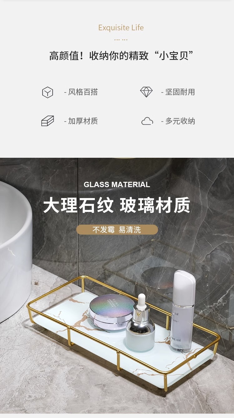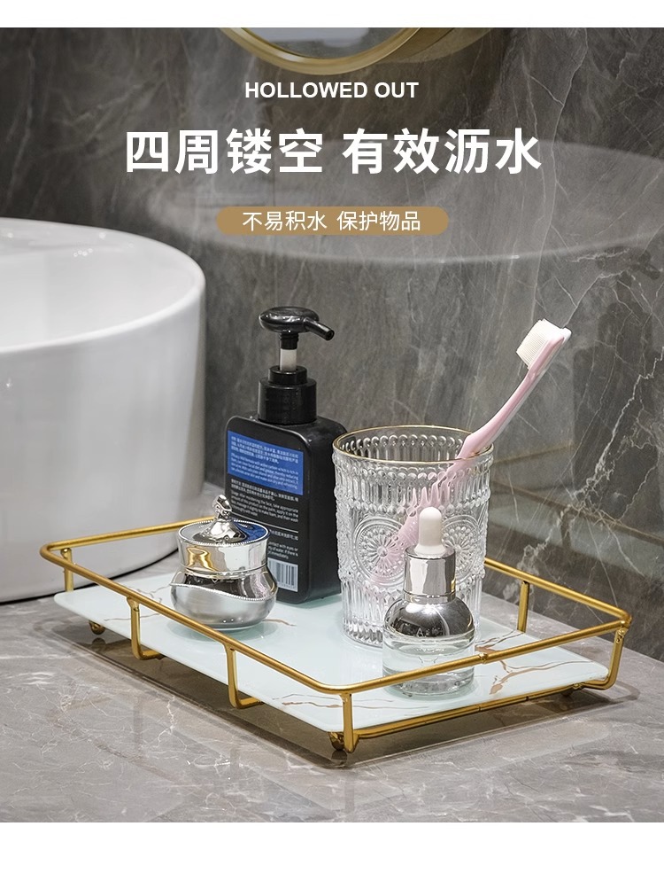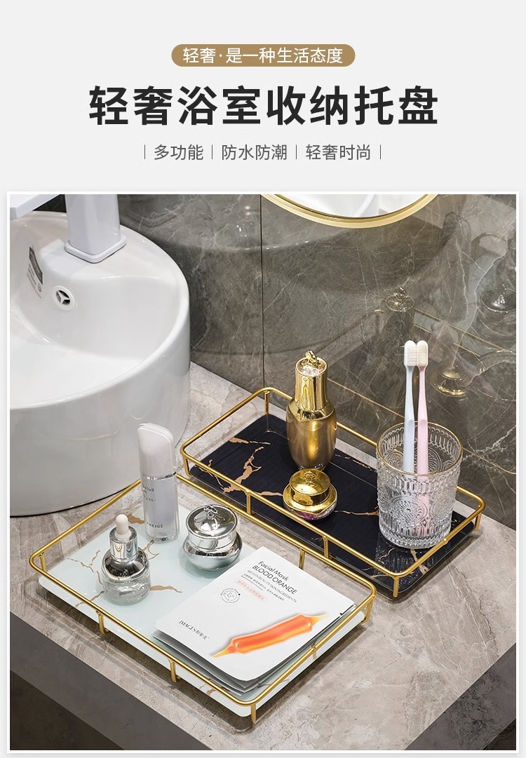 卫生间厕所浴室洗漱台化妆品盒收纳架置物架洗手台轻奢风桌面托盘
