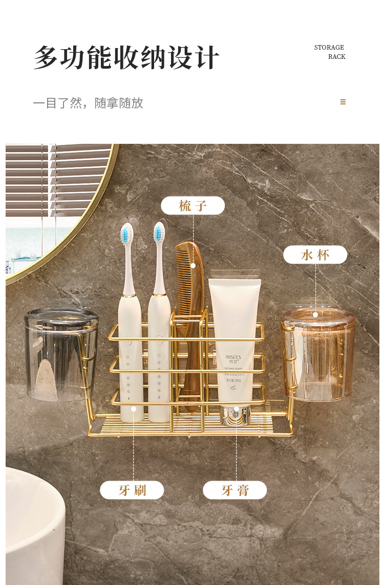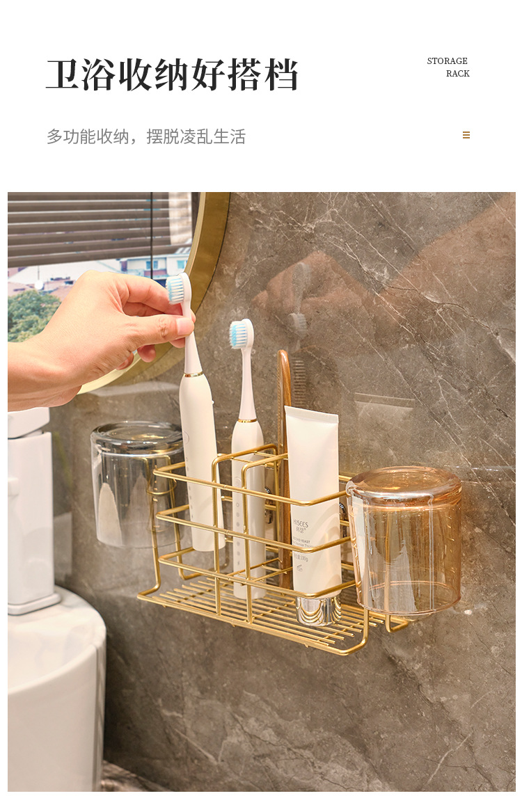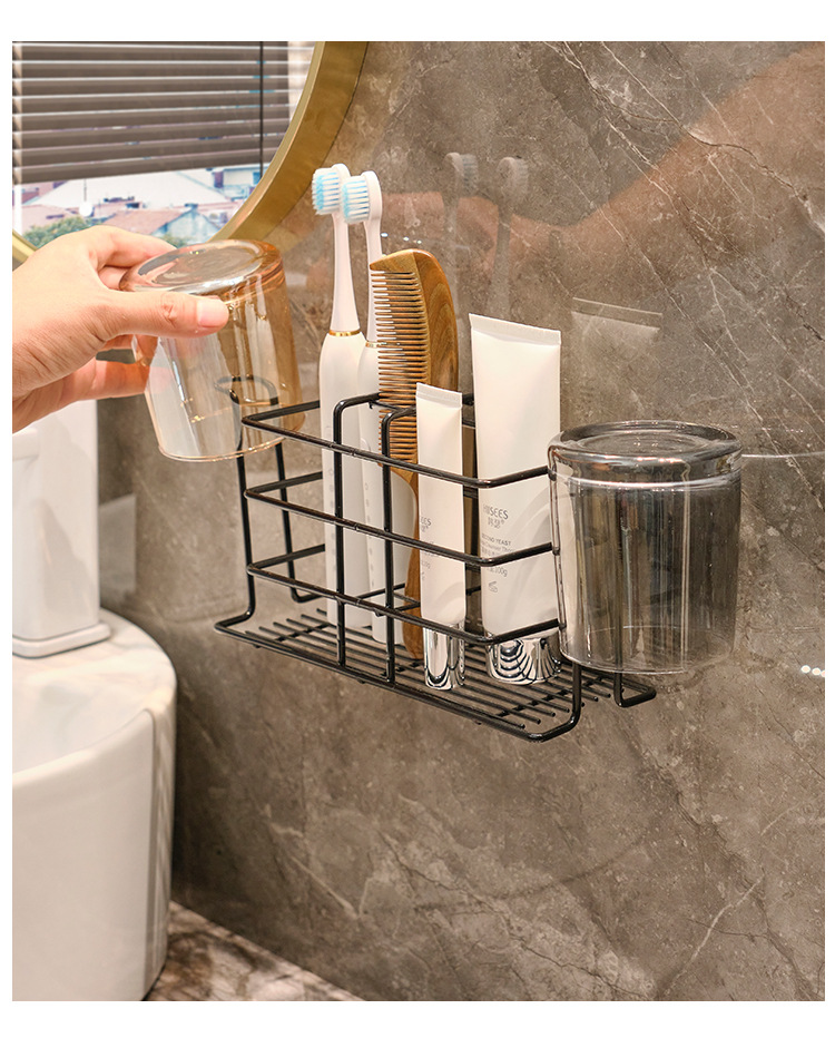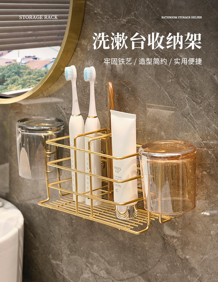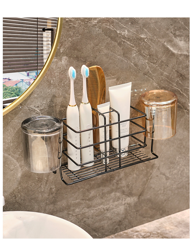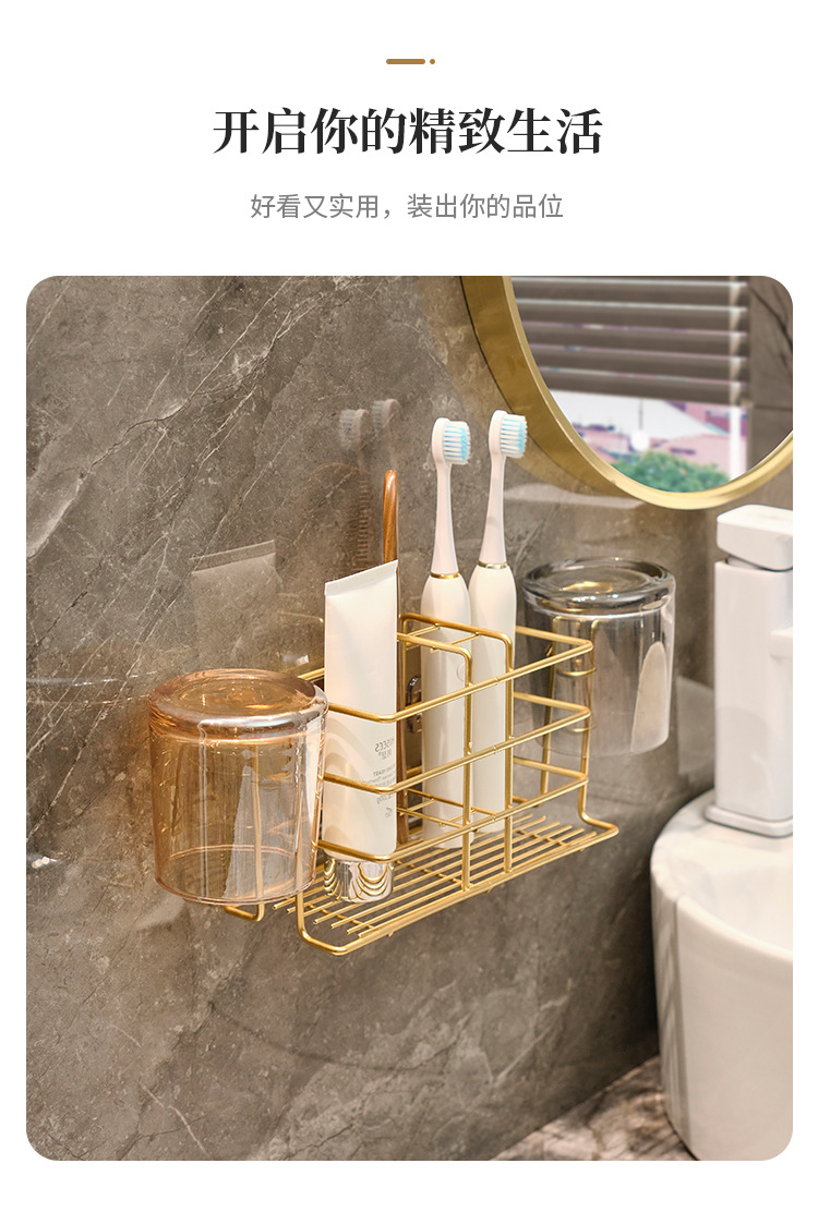 壁挂式牙刷置物架免打孔卫生间刷牙杯收纳漱口杯厕所牙具牙杯架子