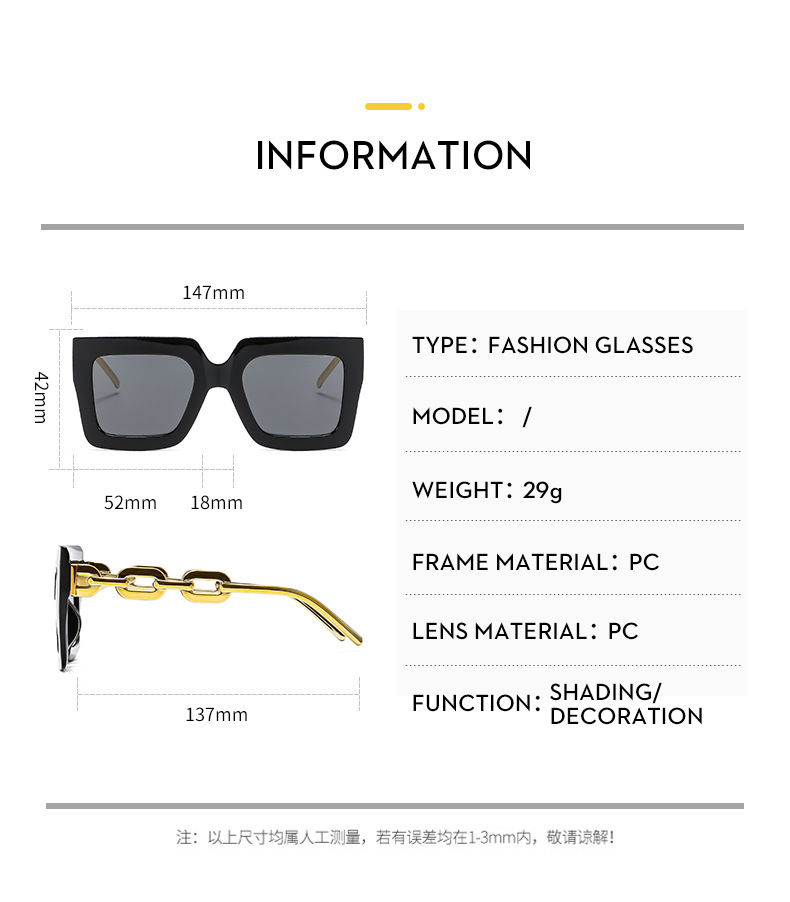 新款时尚大框女士太阳镜个性链条腿跨境欧美网红墨镜高级太阳眼镜