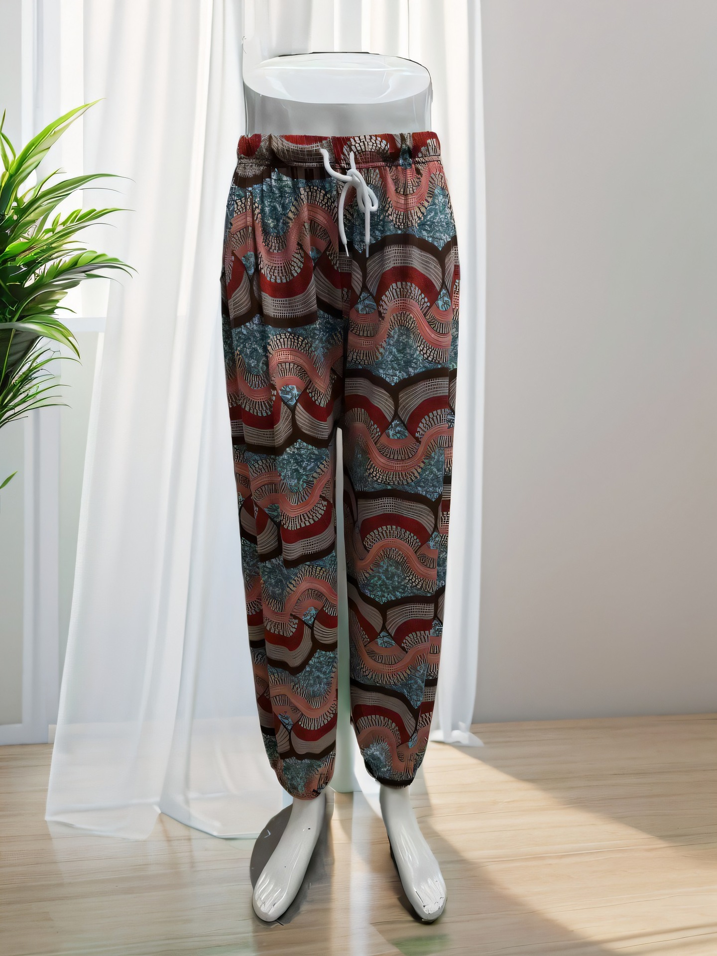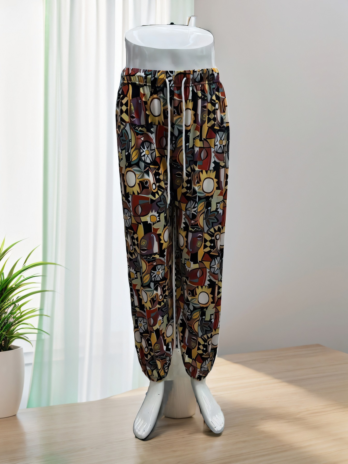 冰丝印花休闲裤女夏爆高腰宽松束脚九分灯笼裤紧口裤凉凉花裤防蚊