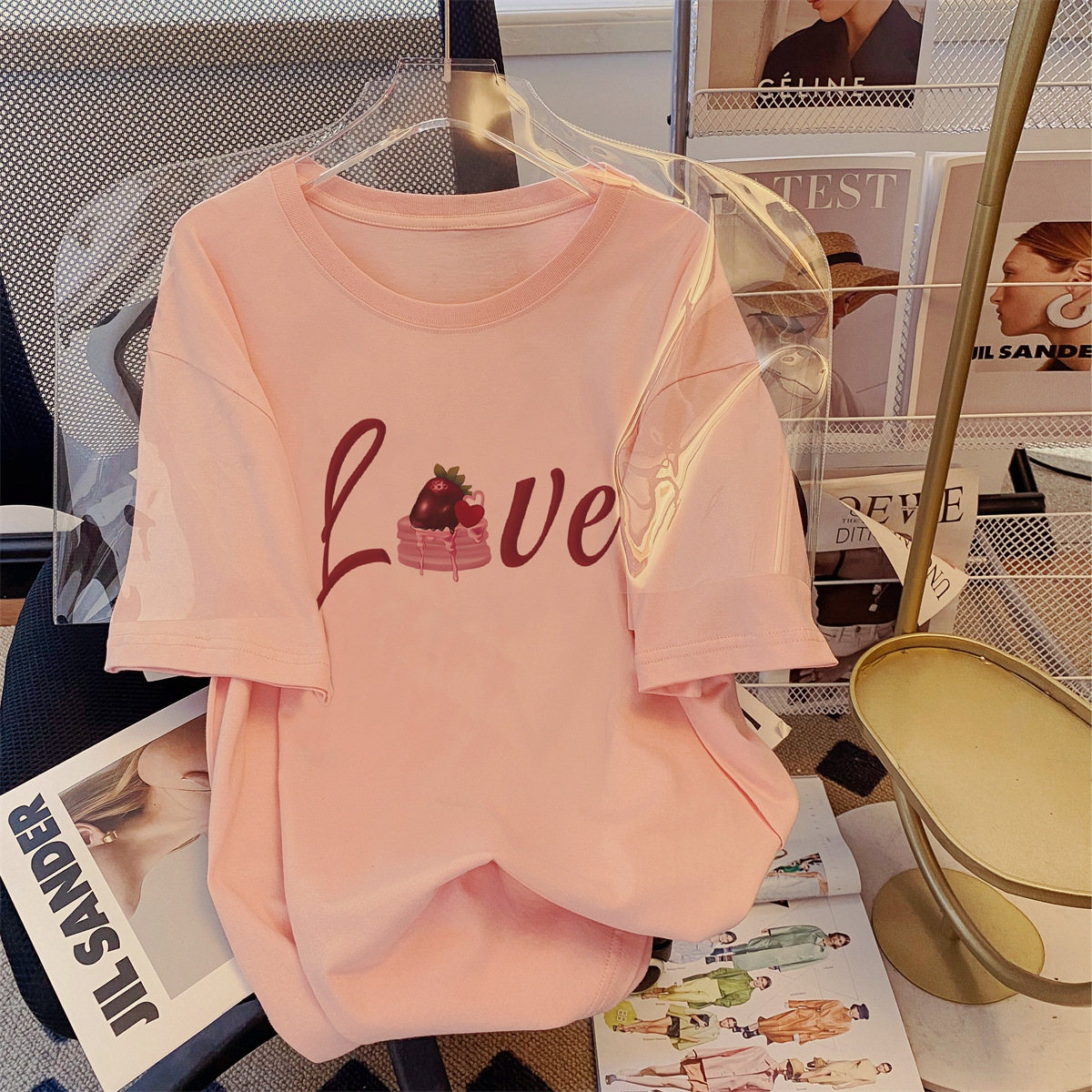 夏季短袖T恤女纯棉中长款宽松休闲女装韩版新款2024潮牌圆领上衣