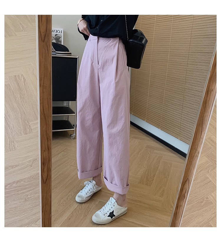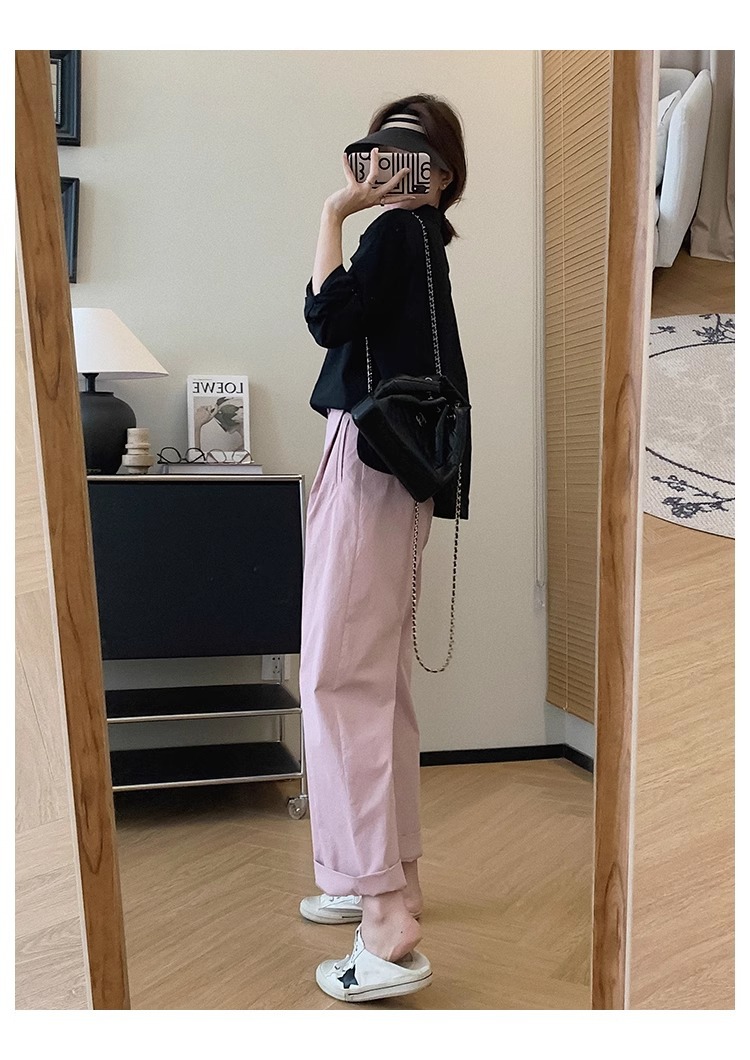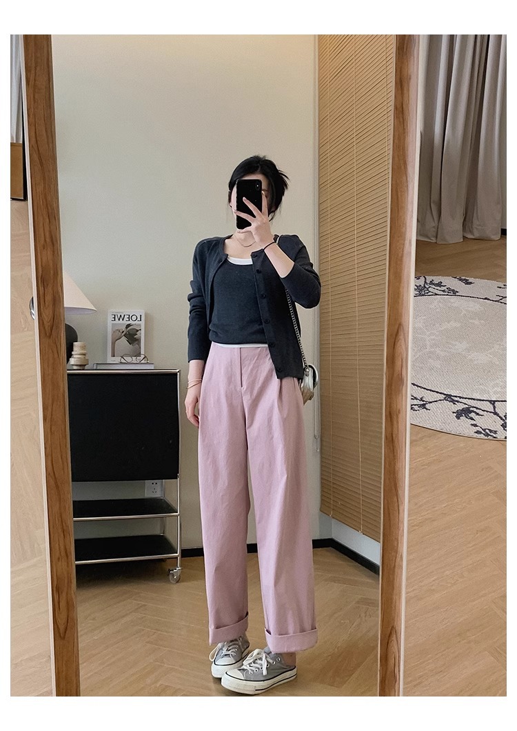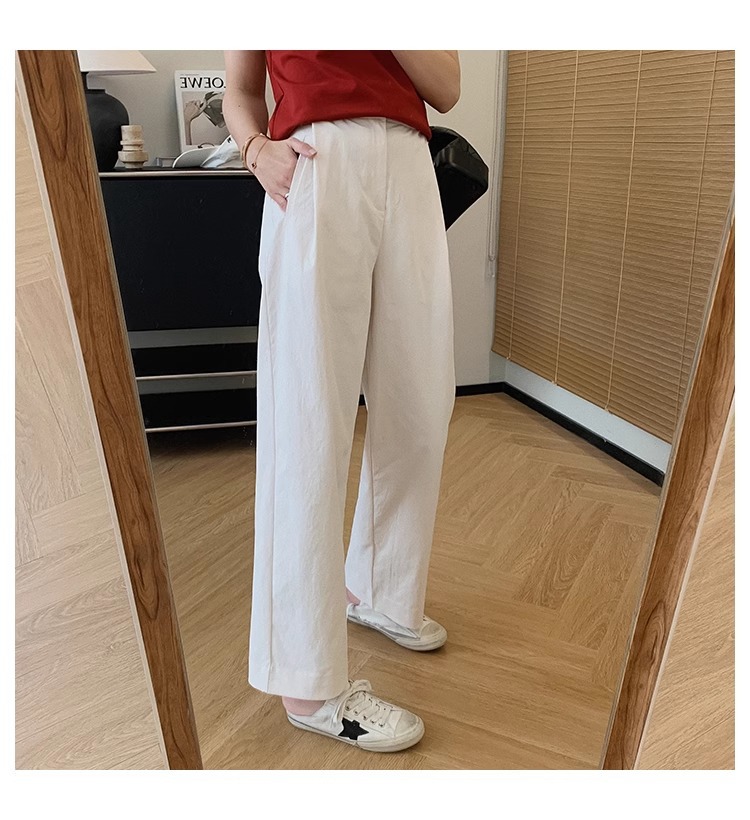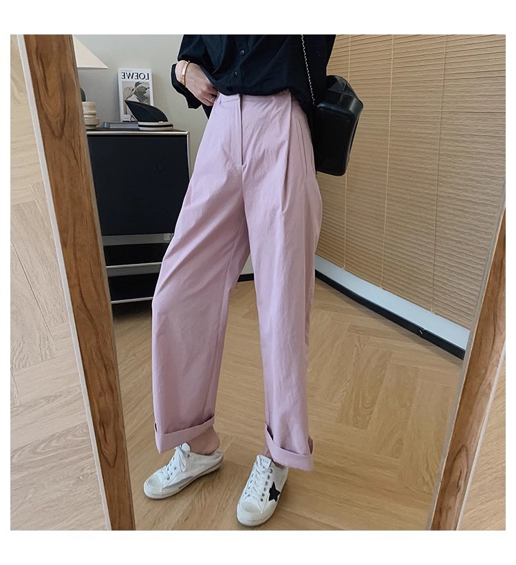 十三行折纸裤!2024夏季新款超态棉微皱纸感遮胯直筒粉色休闲裤女