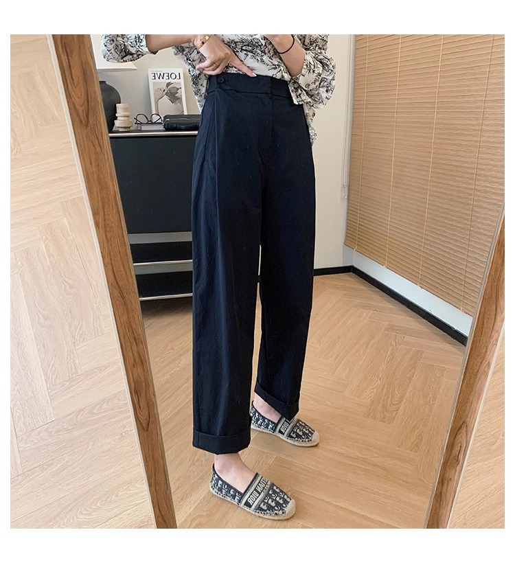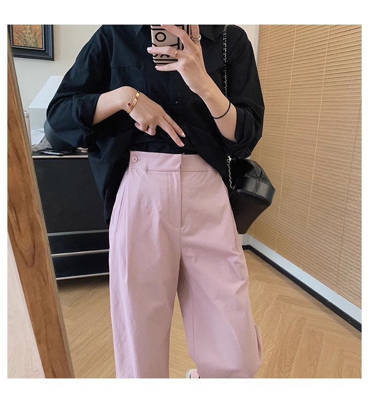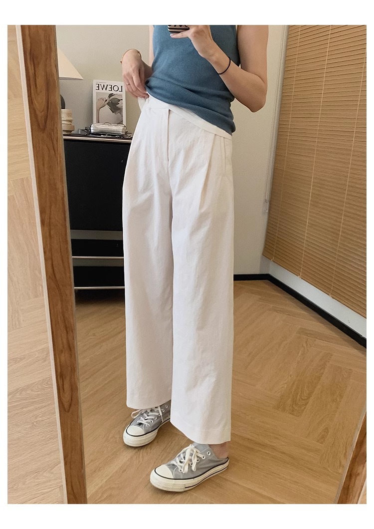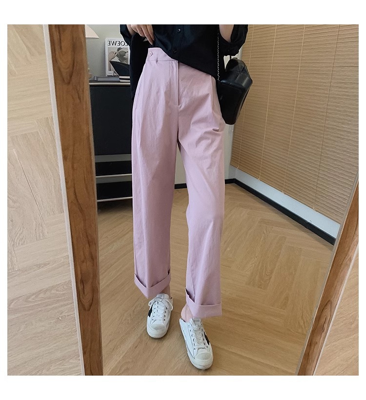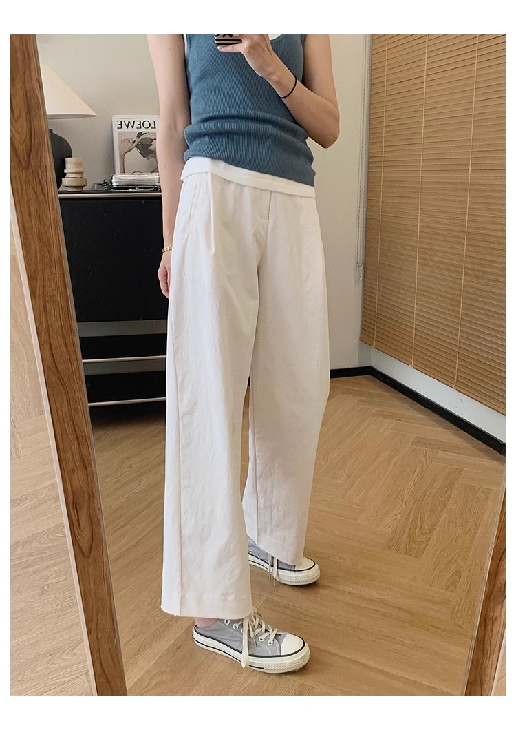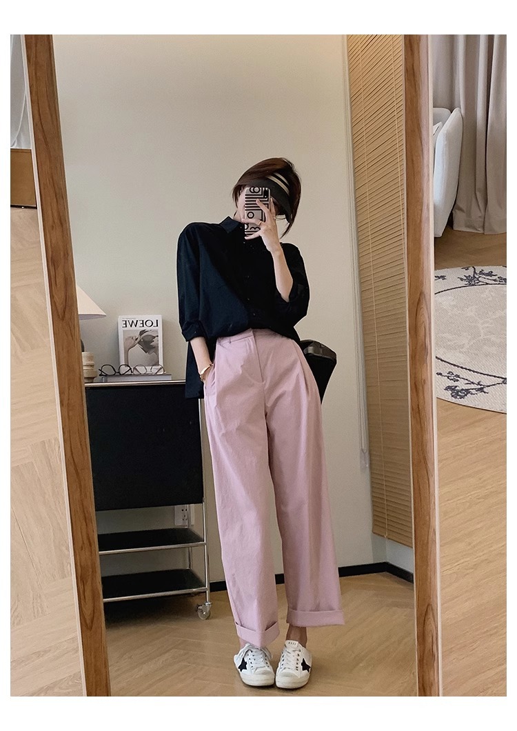 十三行折纸裤!2024夏季新款超态棉微皱纸感遮胯直筒粉色休闲裤女