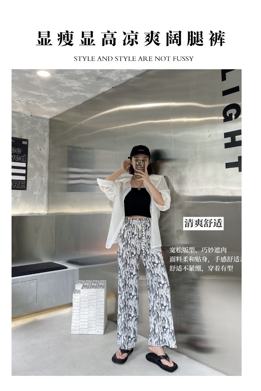 夏季新款复古风冰丝阔腿裤女高腰宽松直筒裤薄款女士垂坠感休闲裤