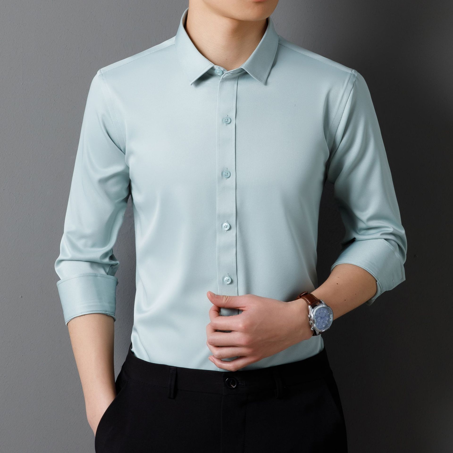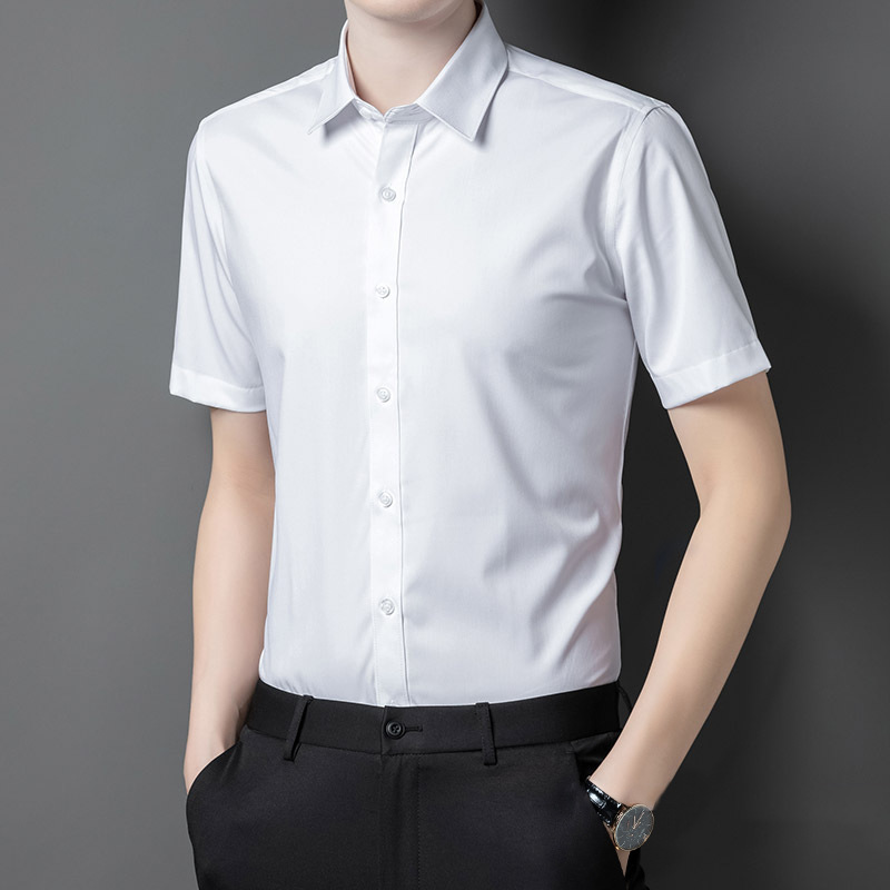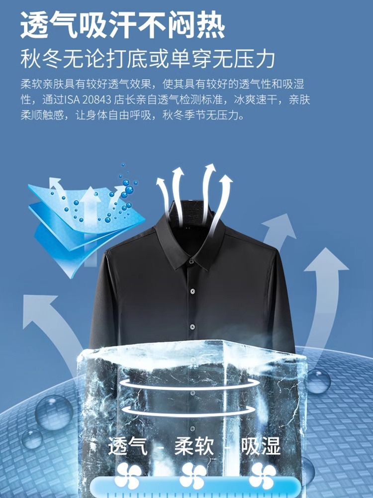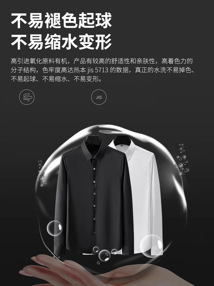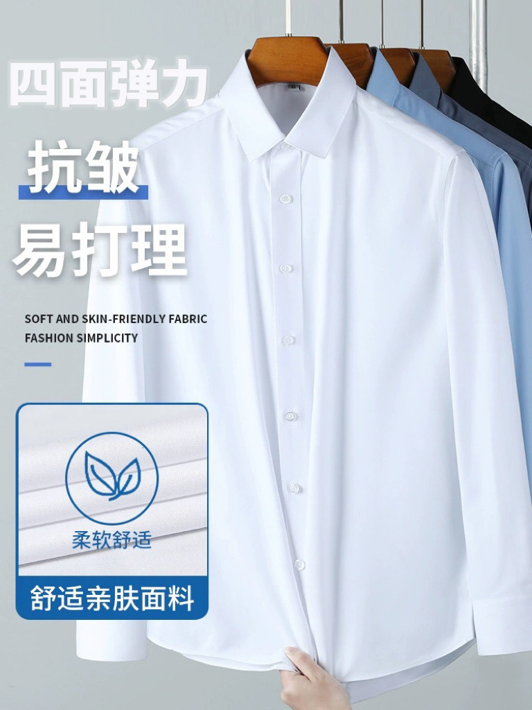 大码四面弹力衬衫男士长袖免烫工装商务休闲高级感白色衬衣外贸款
