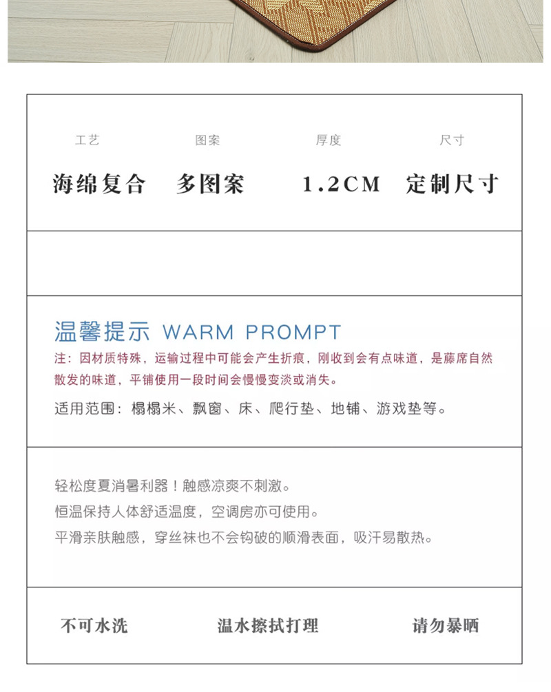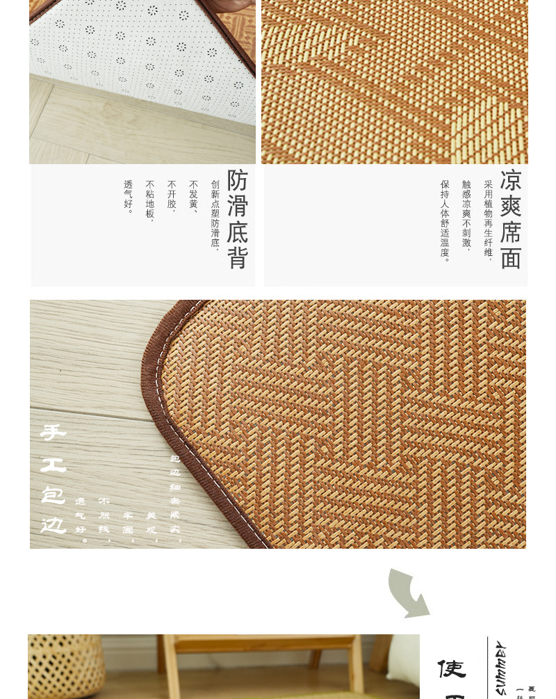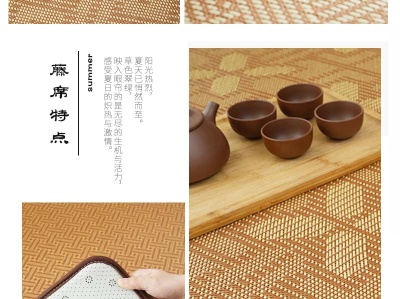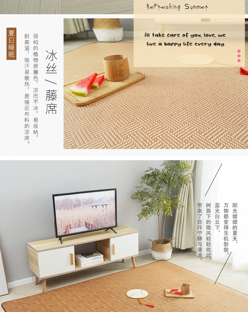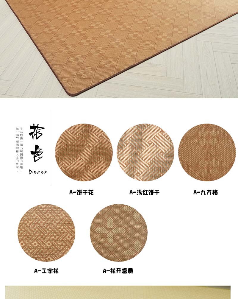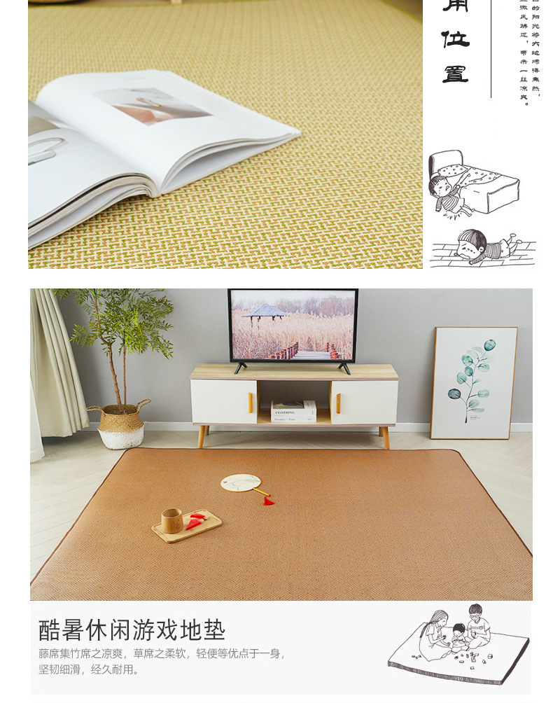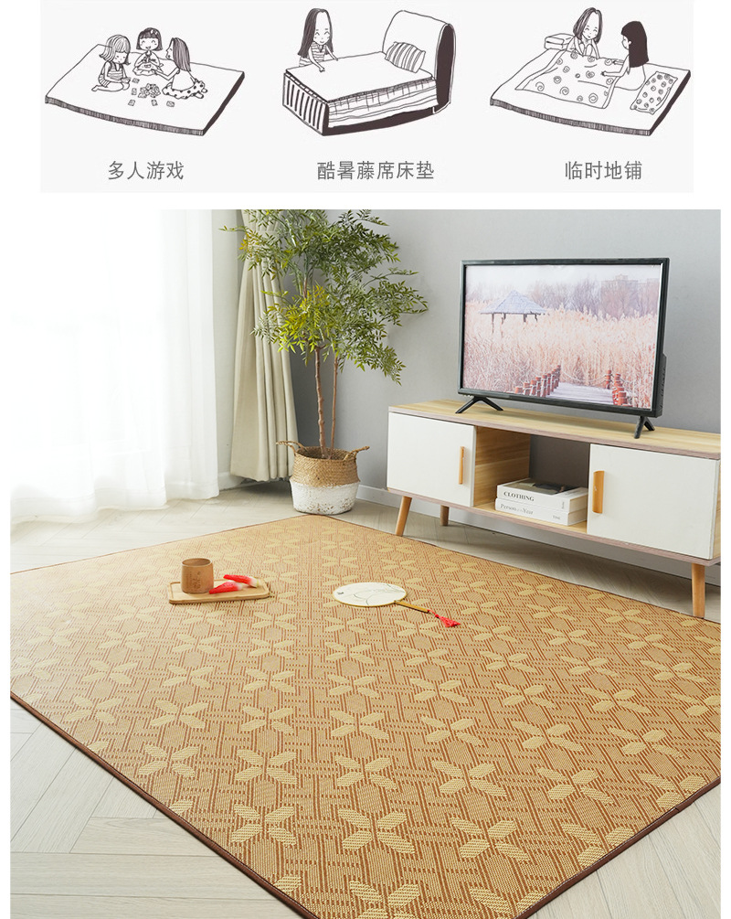 夏季藤编凉席日式客厅冰丝地毯打地铺榻榻米藤席地垫卧室床边毯