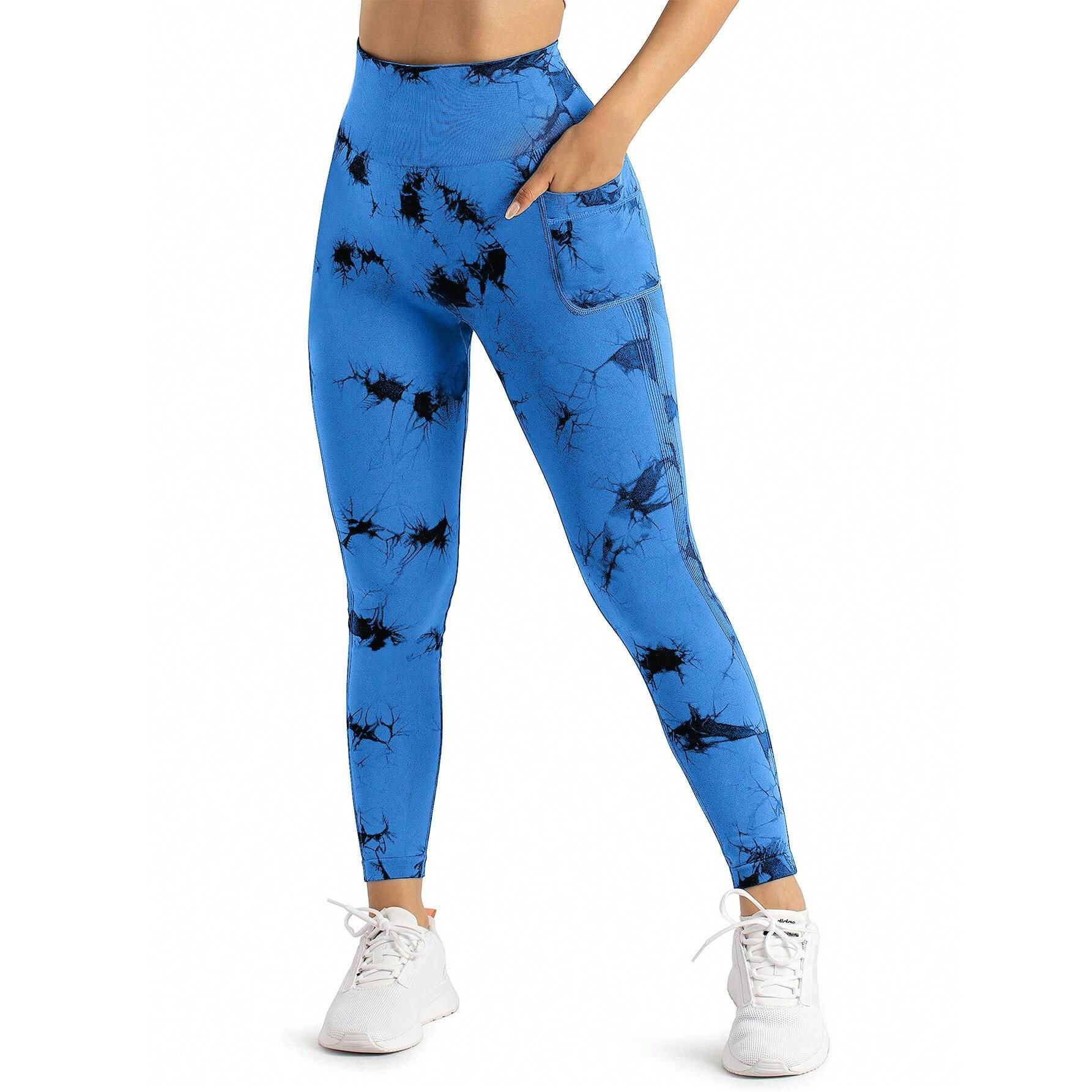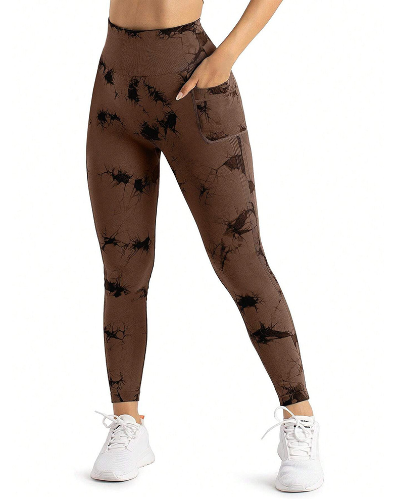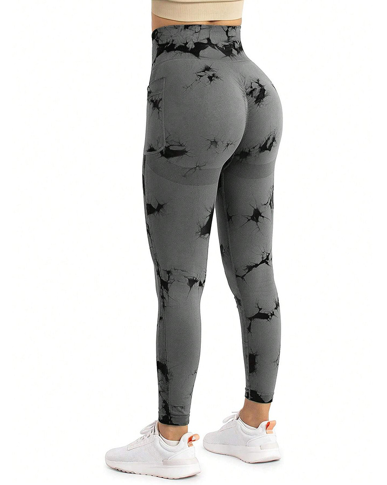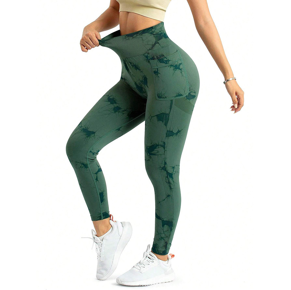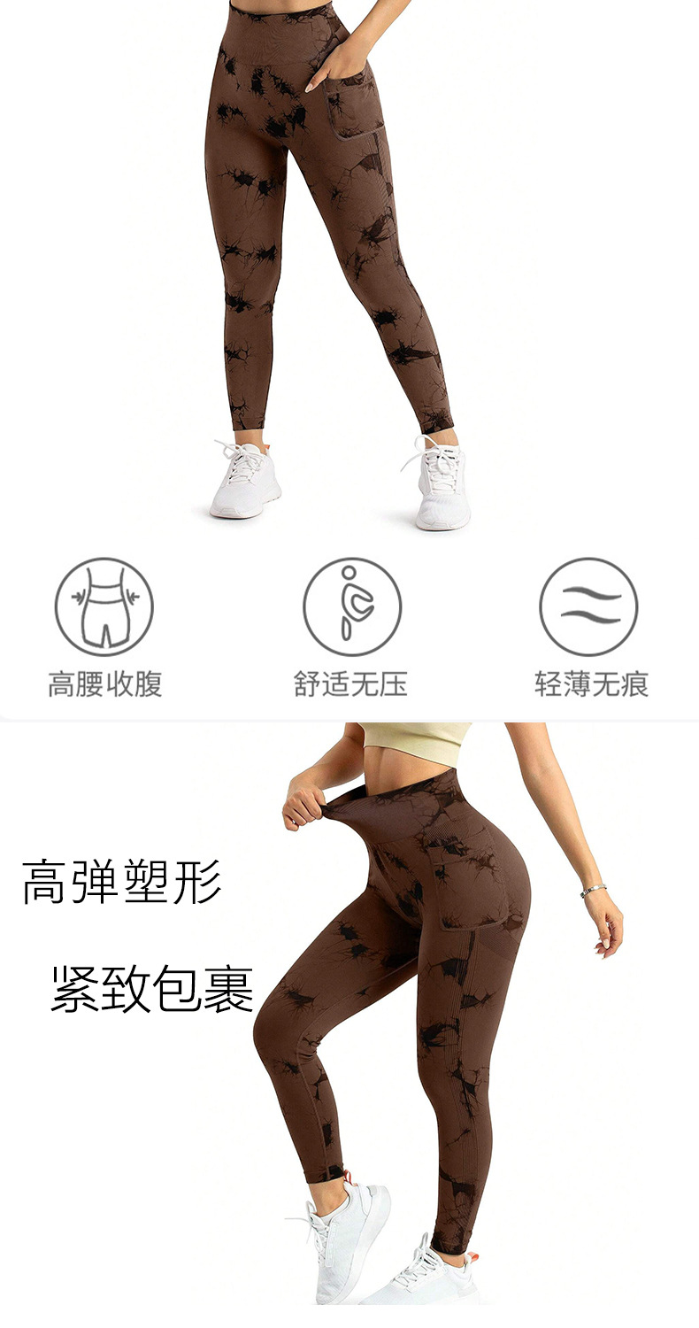 跨境新款扎染侧口袋瑜伽裤长款裸感跑步运动裤健身提臀瑜伽裤女款
