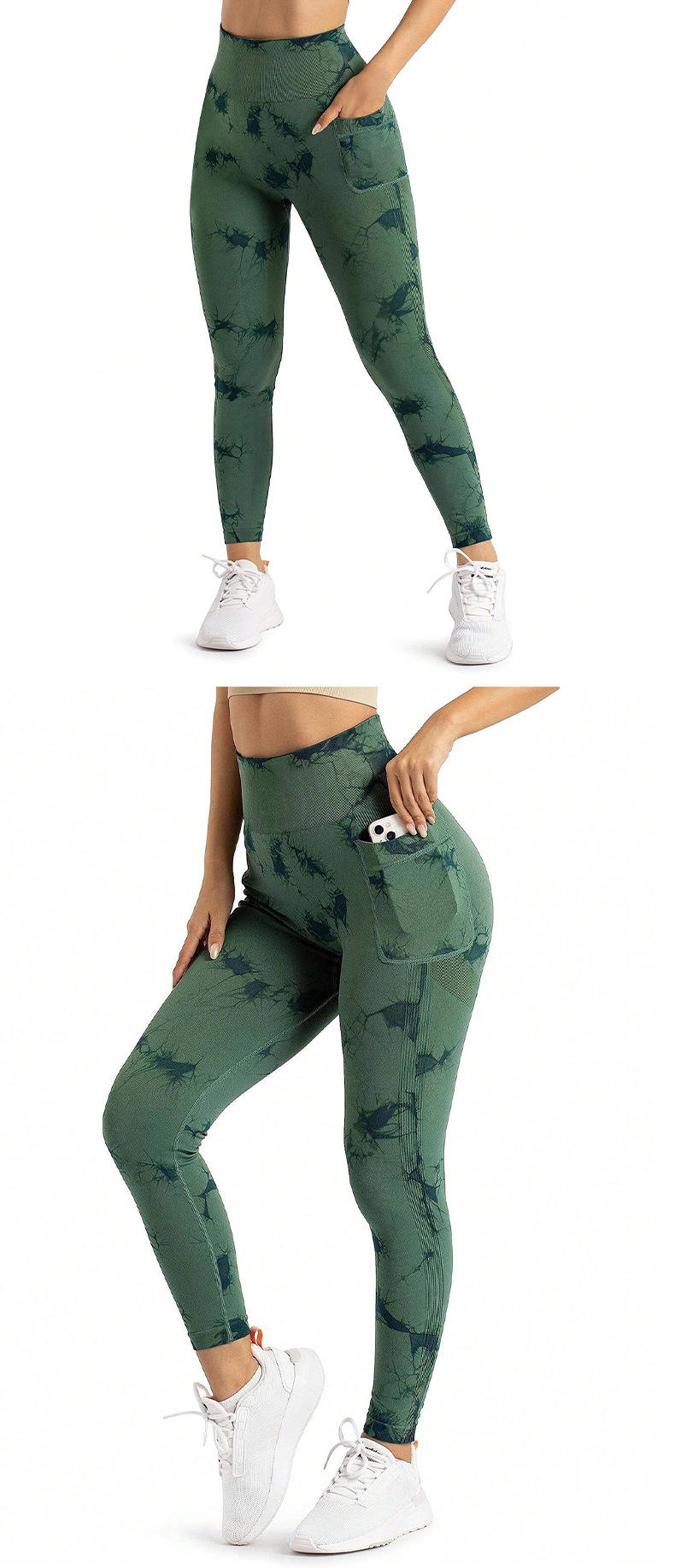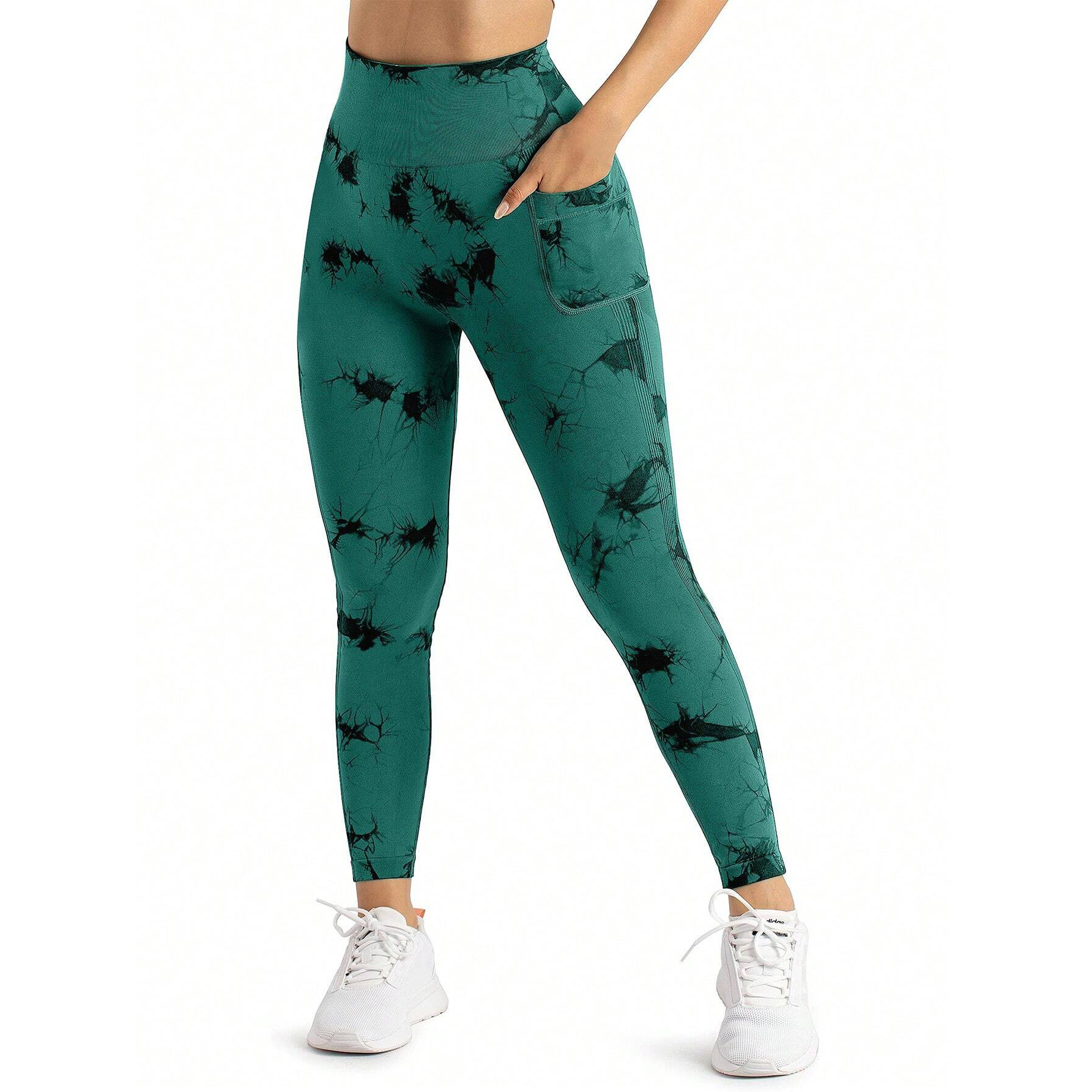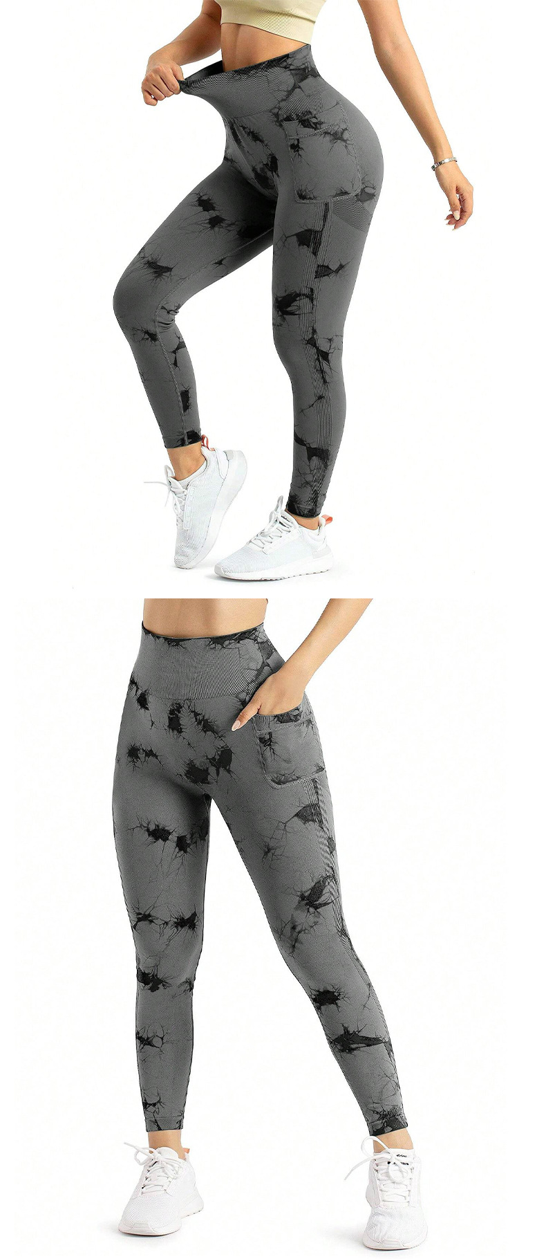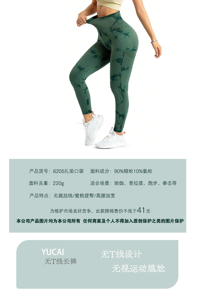 跨境新款扎染侧口袋瑜伽裤长款裸感跑步运动裤健身提臀瑜伽裤女款