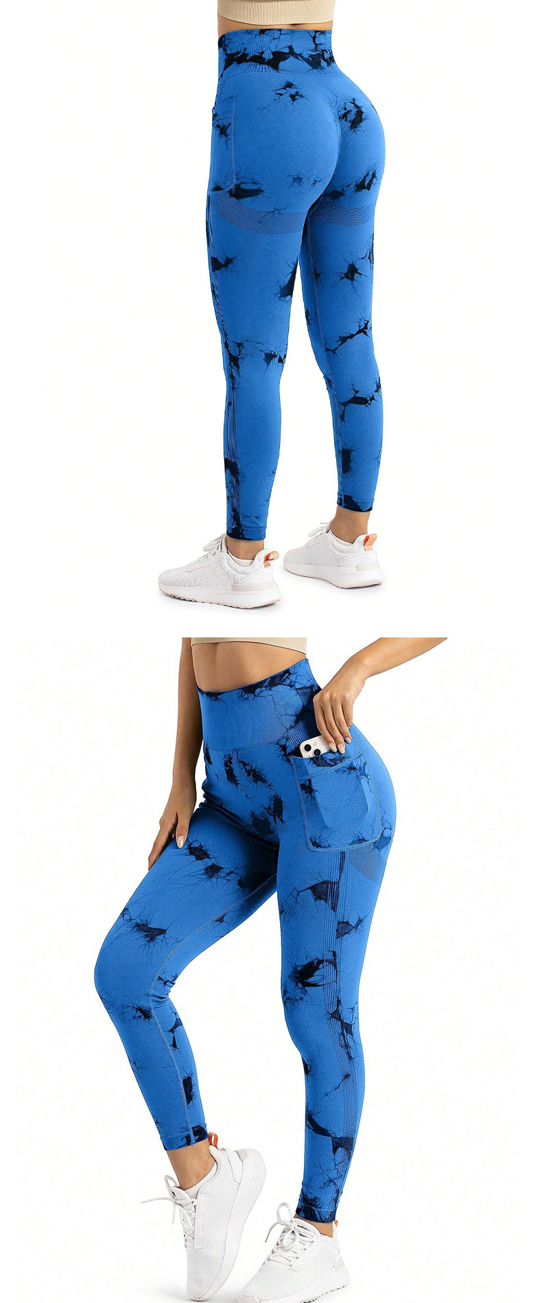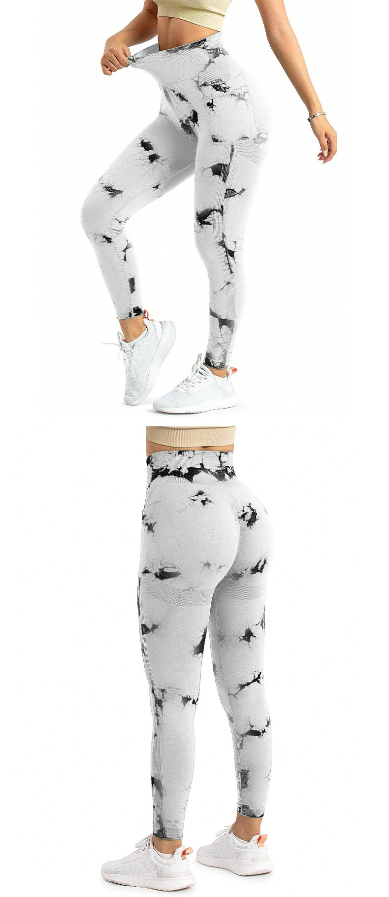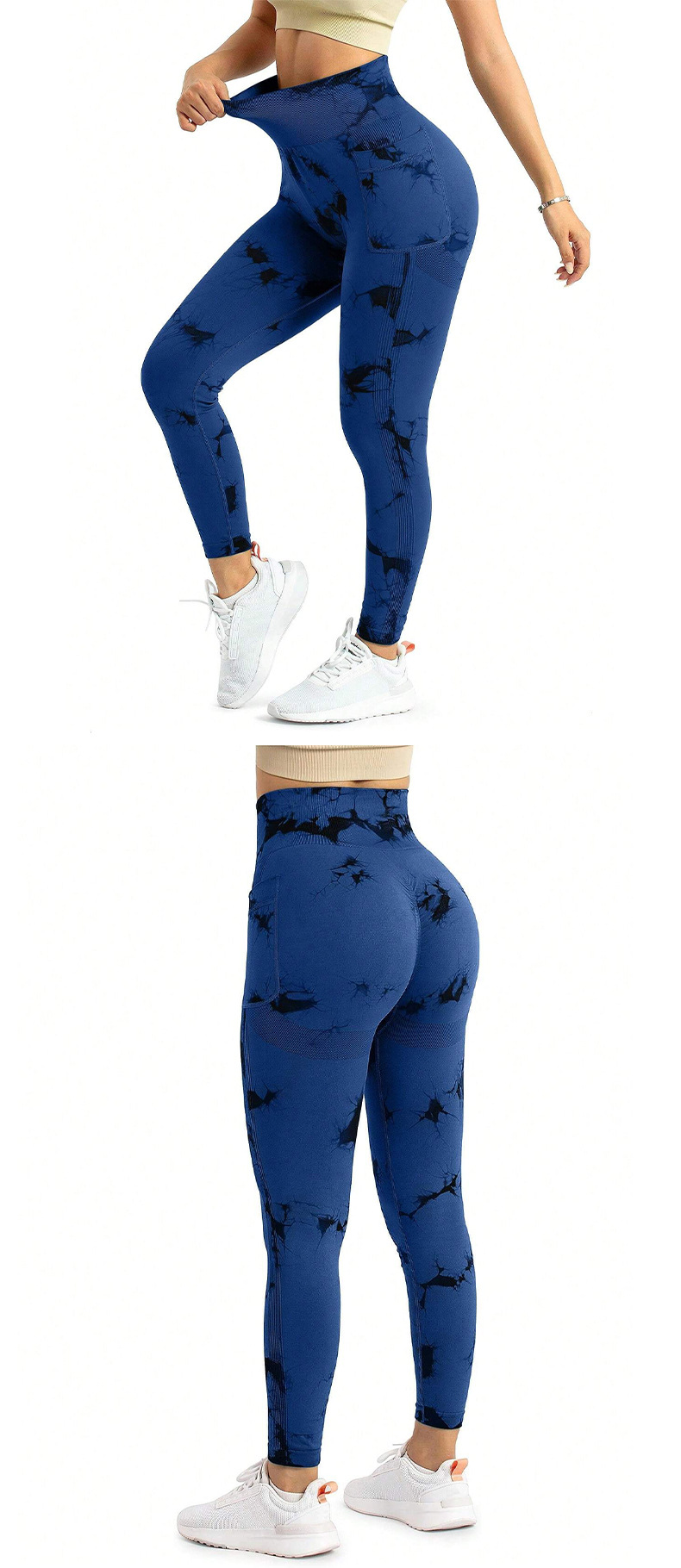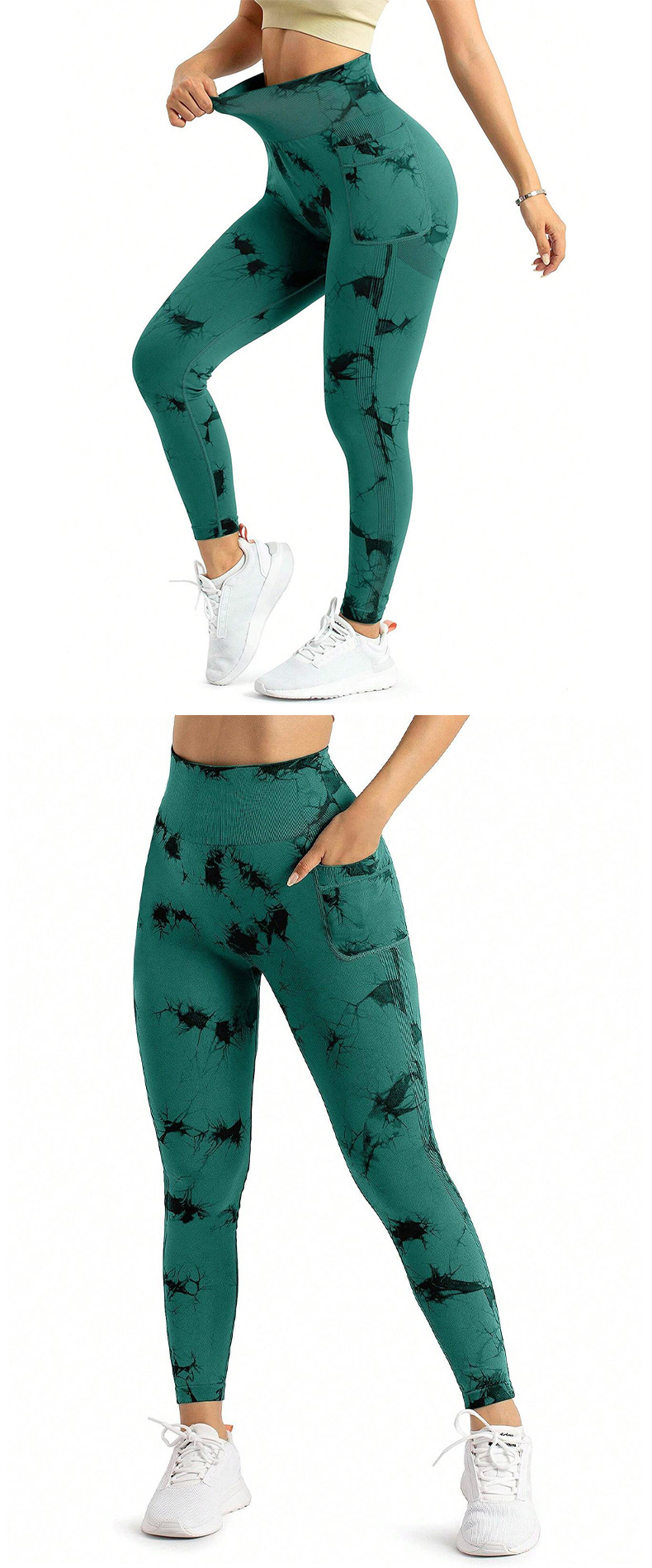 跨境新款扎染侧口袋瑜伽裤长款裸感跑步运动裤健身提臀瑜伽裤女款