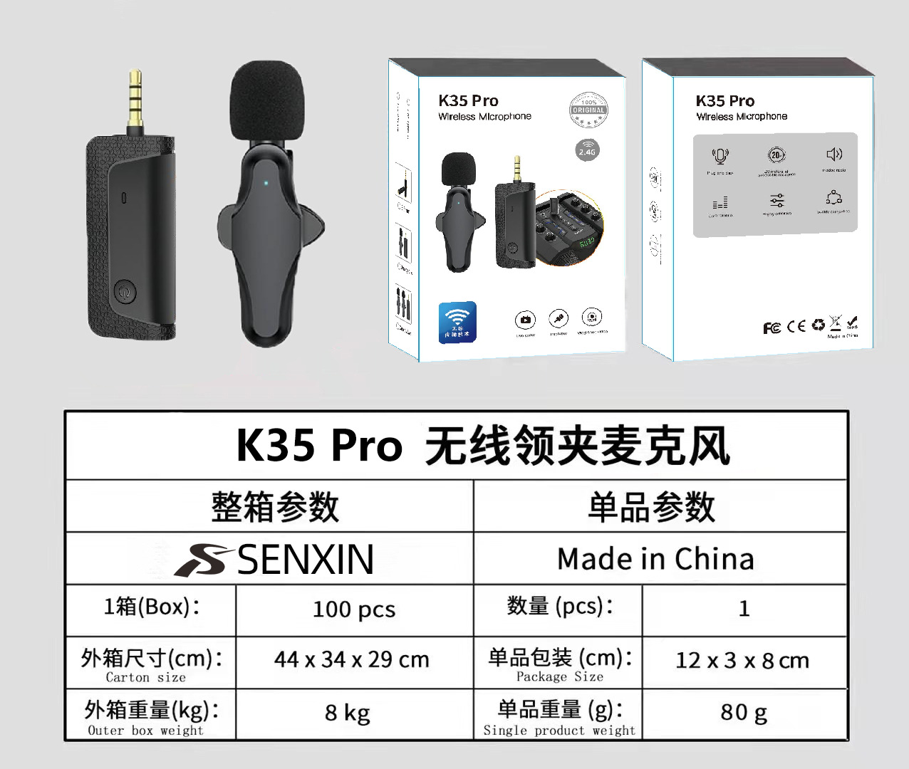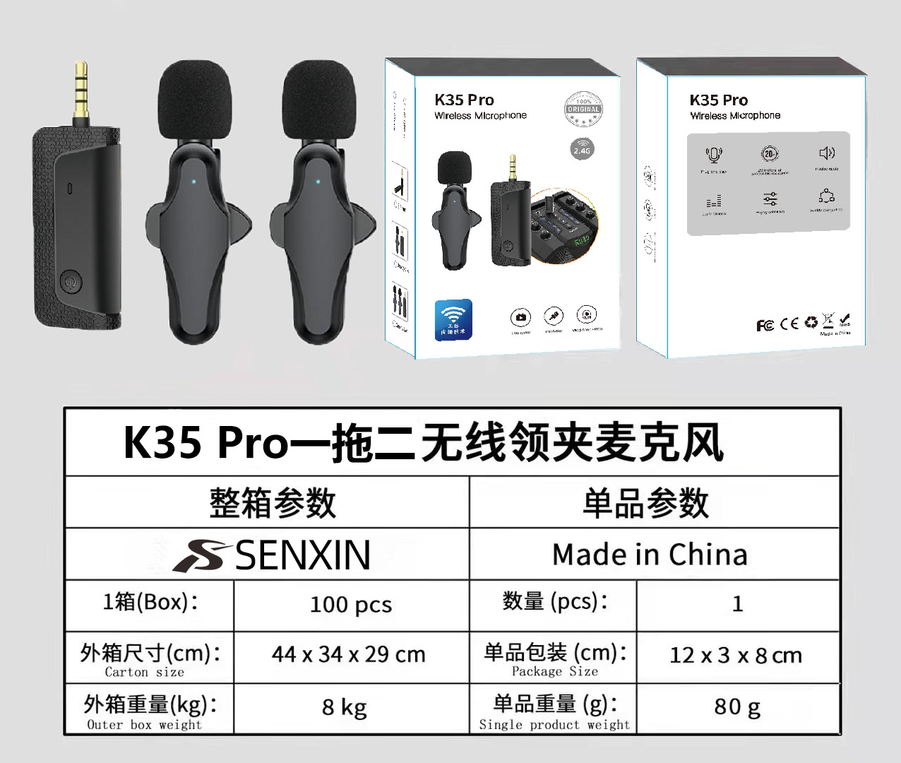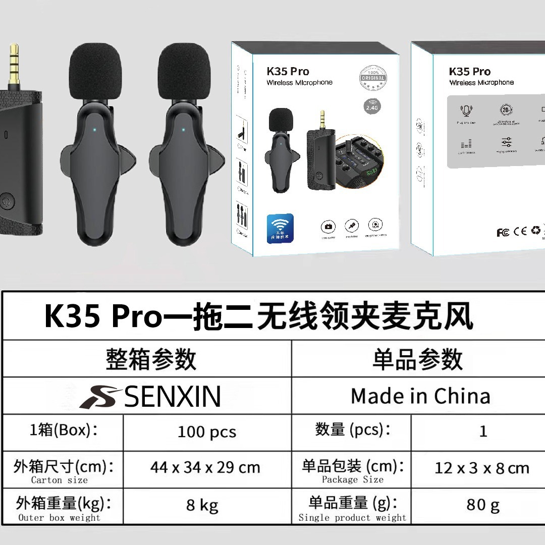 新款私模k35Pro无线领夹麦克风主播领夹麦手机直播降噪录音小话筒