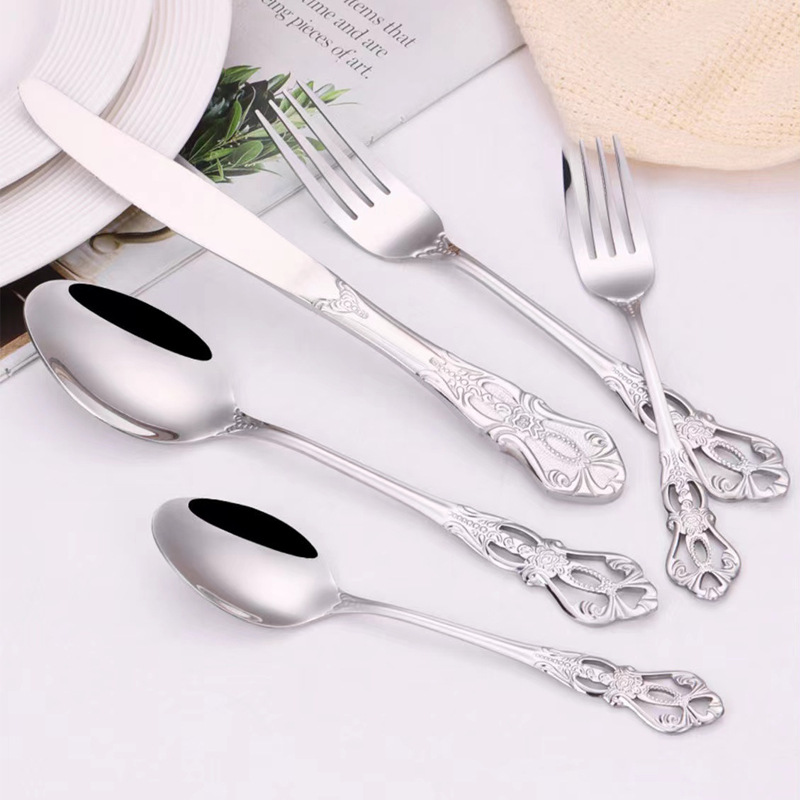 跨境不锈钢刀叉勺浮雕镂空宫廷皇庭餐具酒店西餐厅牛排刀叉甜品勺