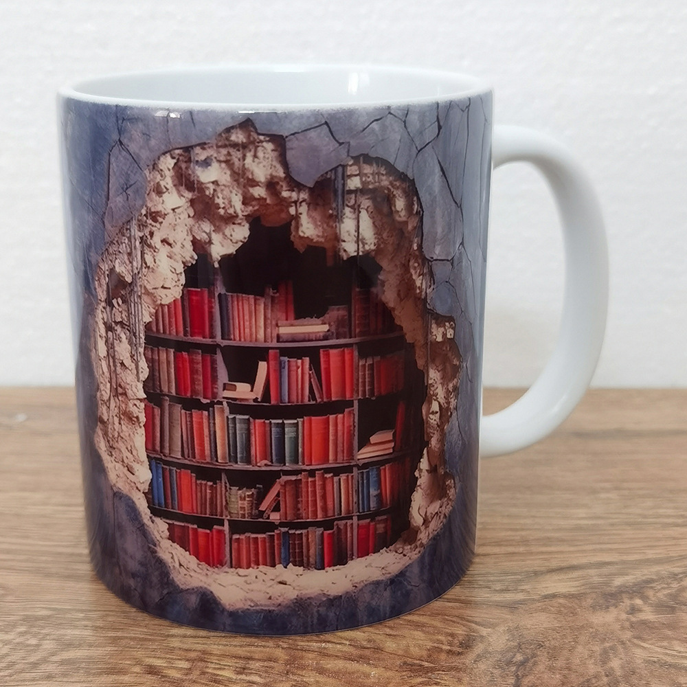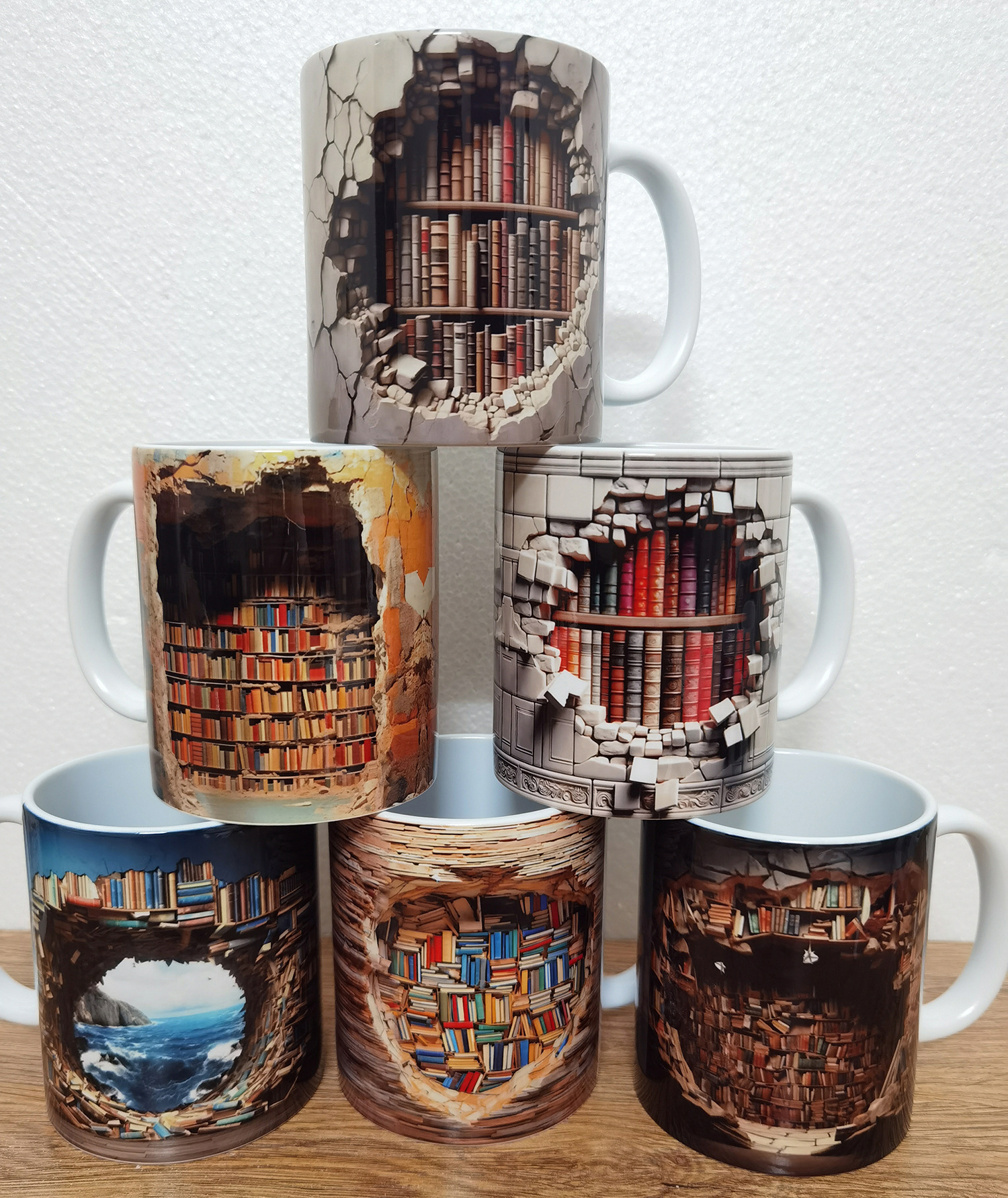 3D空洞bookshelf书架图书馆陶瓷咖啡马克杯子茶水杯新款书迷Book