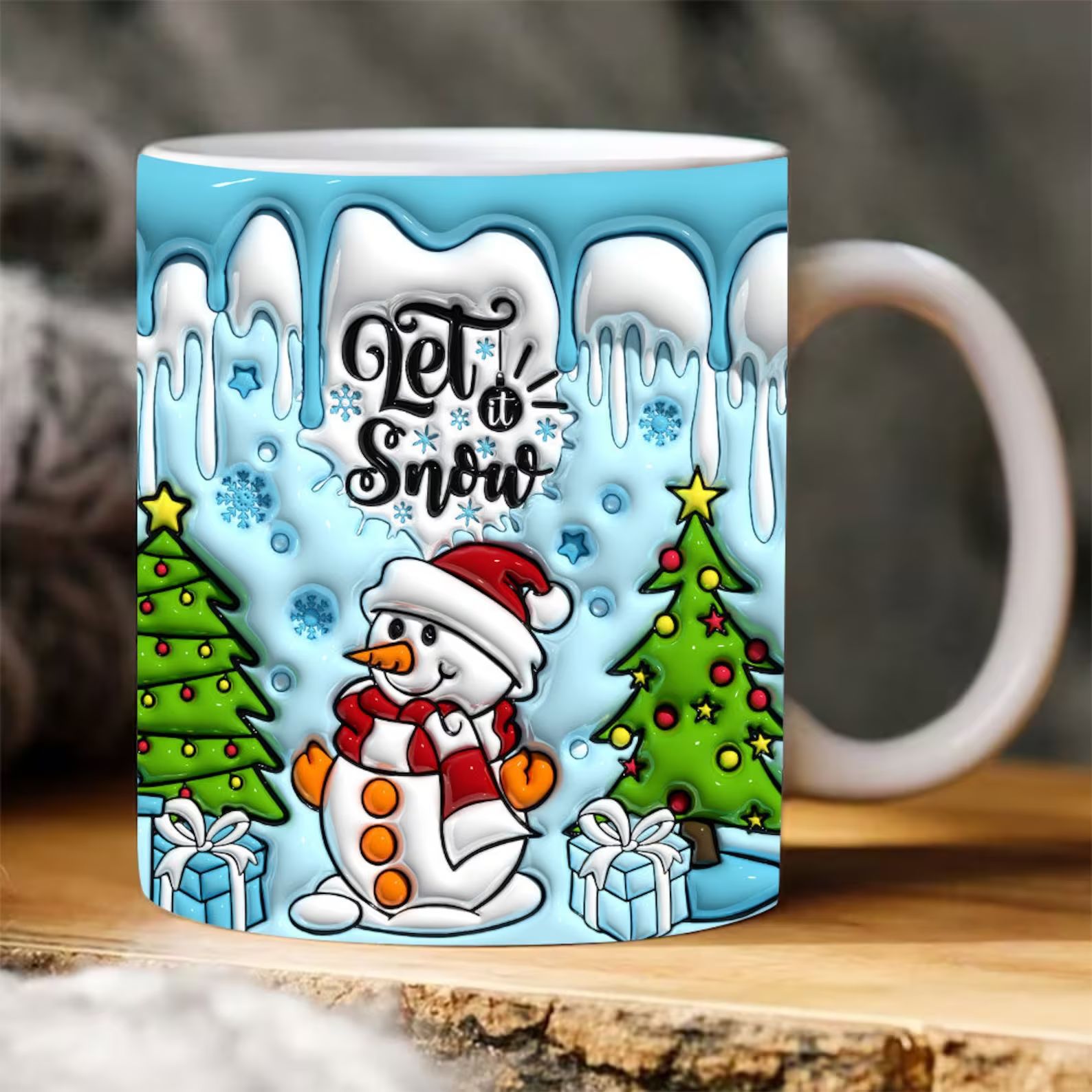 3D圣诞节雪人Snowman陶瓷咖啡马克杯子茶水杯Christmas Xmas礼物