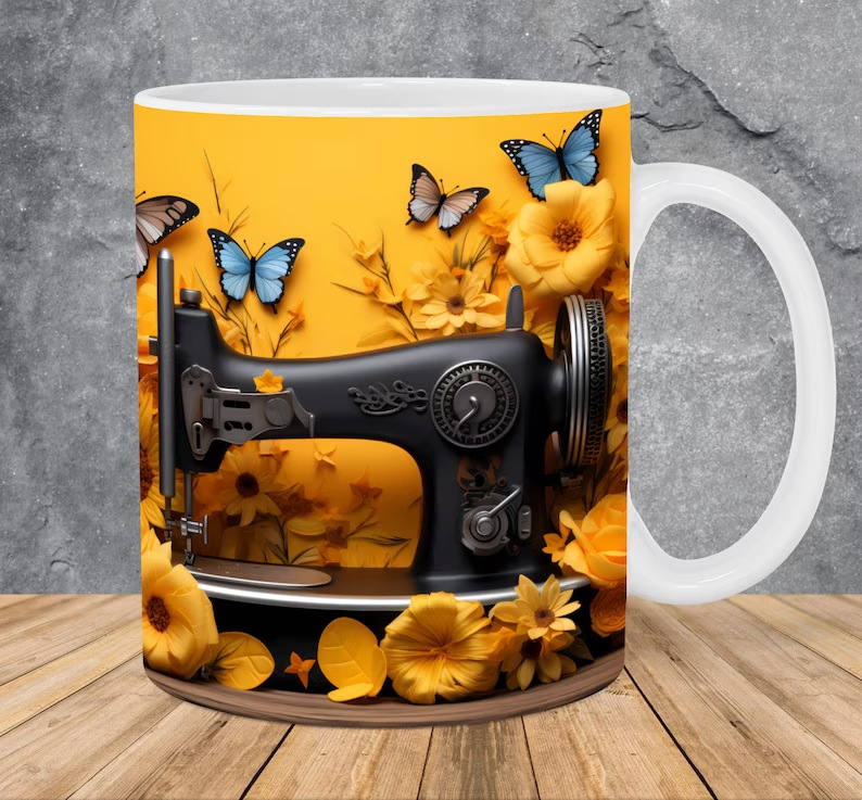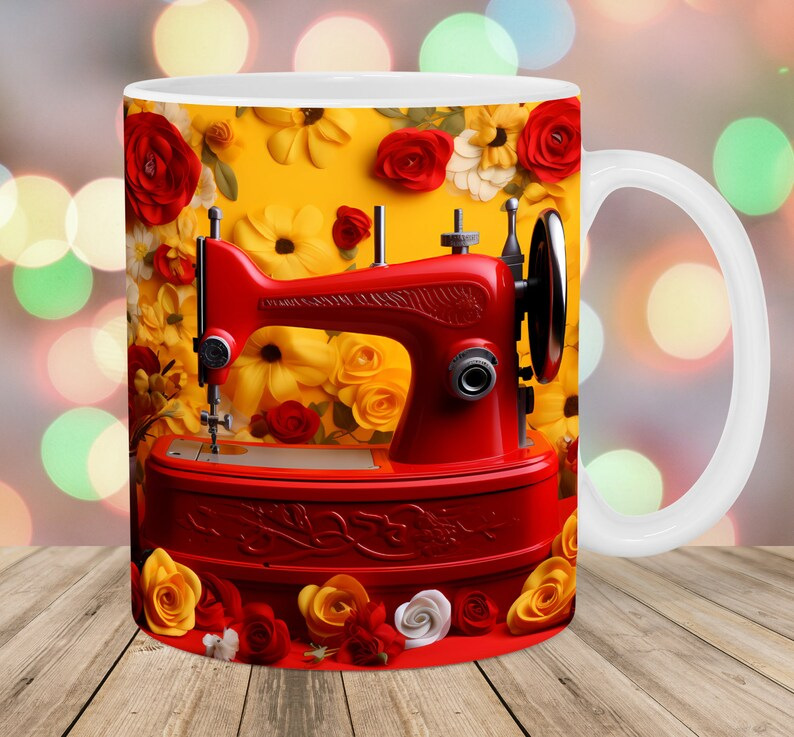 缝纫机3D平面彩色sewing针车陶瓷咖啡马克杯子茶水杯新款圣诞节